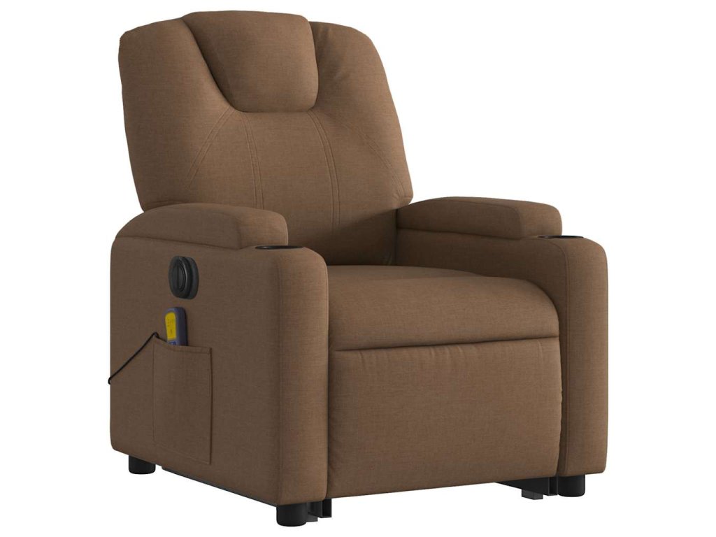 Multidom Zdvíhacie a sklápacie elektrické masážne kreslo, hnedé, látka