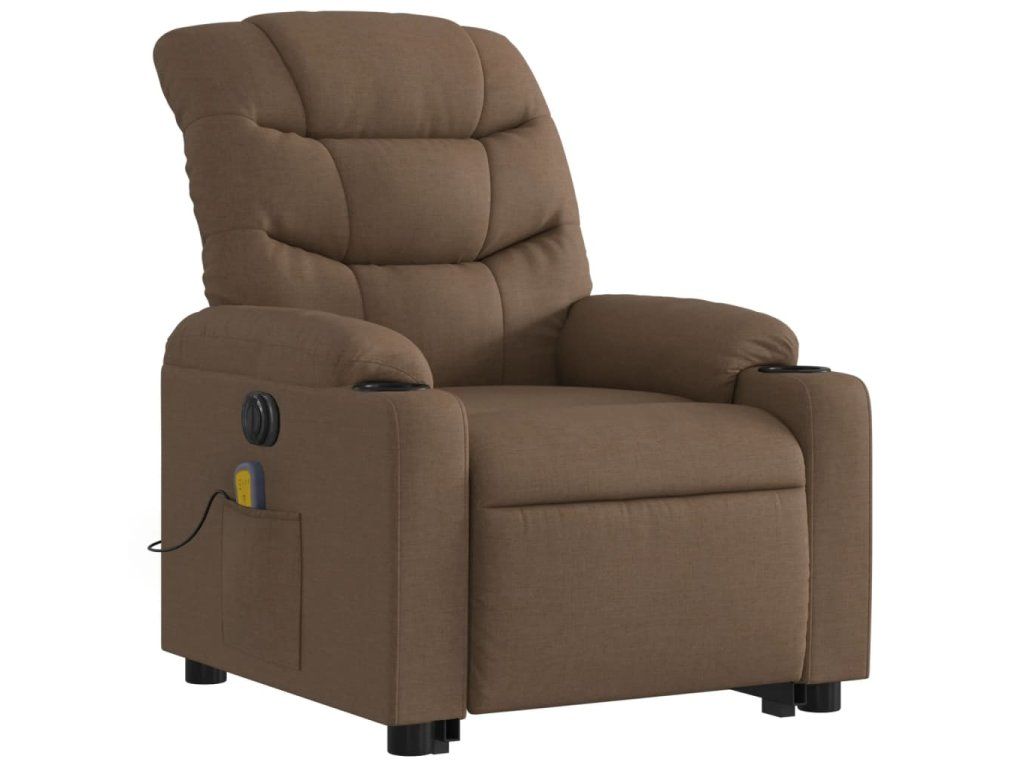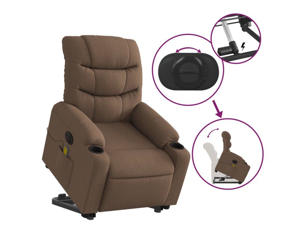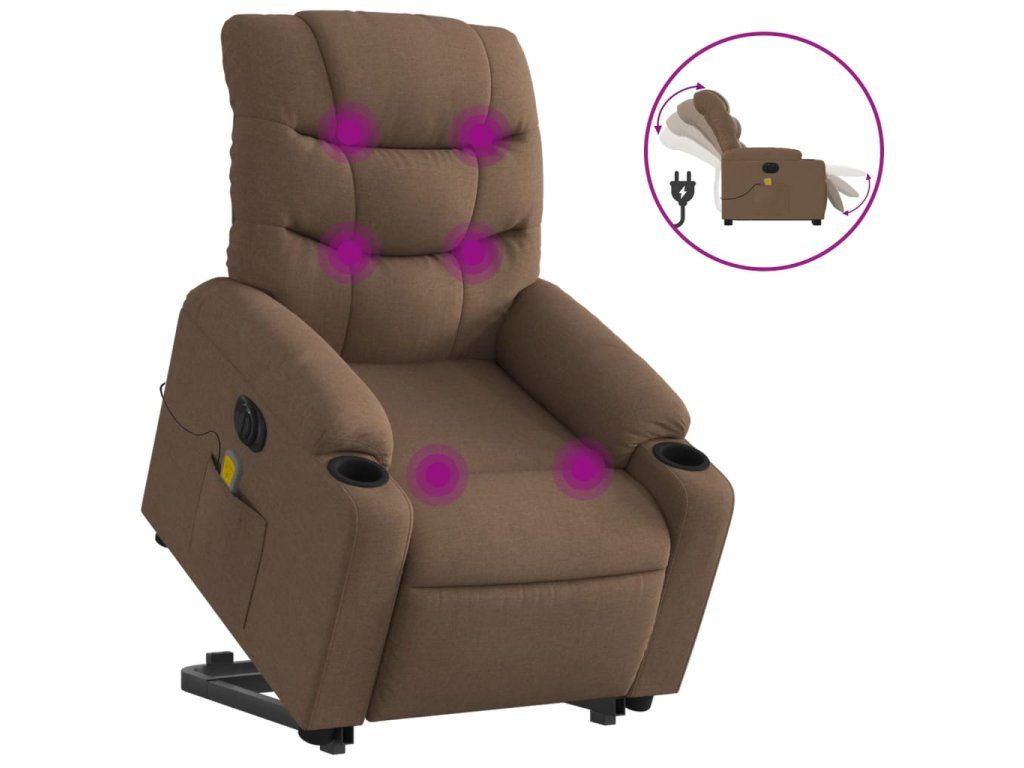 Multidom Zdvíhacie a sklápacie elektrické masážne kreslo, hnedé, látka