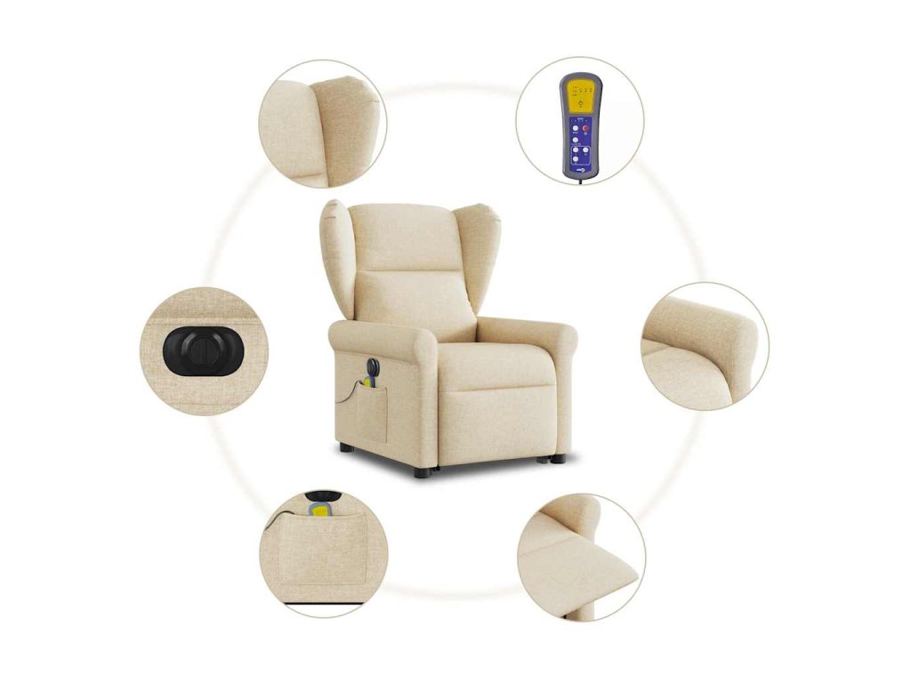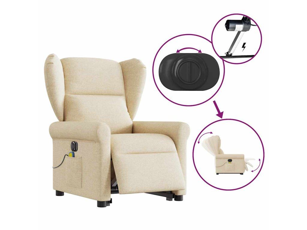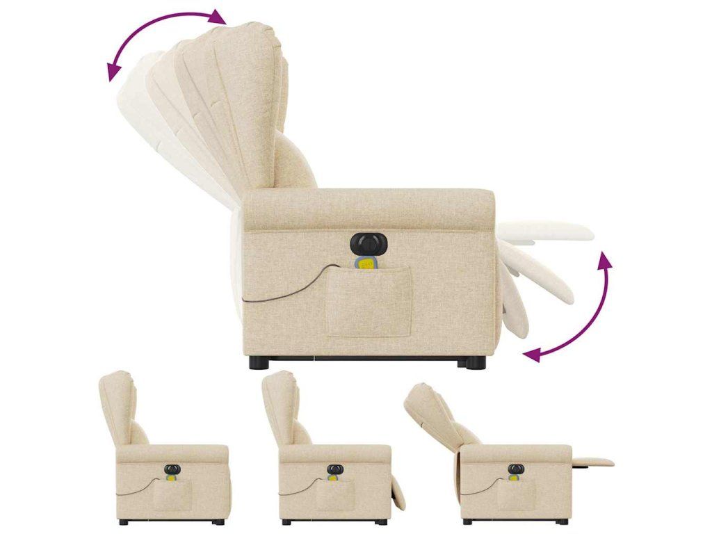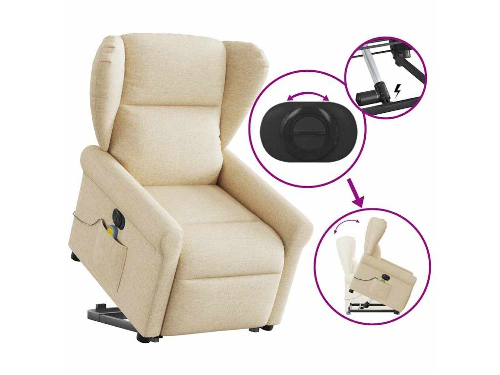 Multidom Zdvíhacie a sklápacie elektrické masážne kreslo, krémové, látka