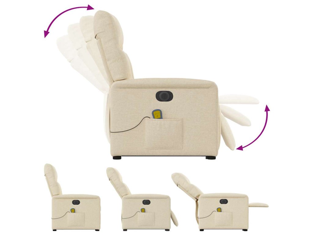 Multidom Zdvíhacie a sklápacie elektrické masážne kreslo, krémové, látka