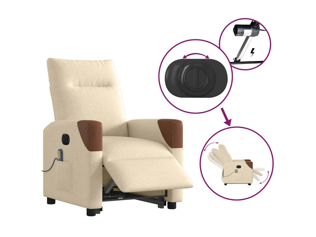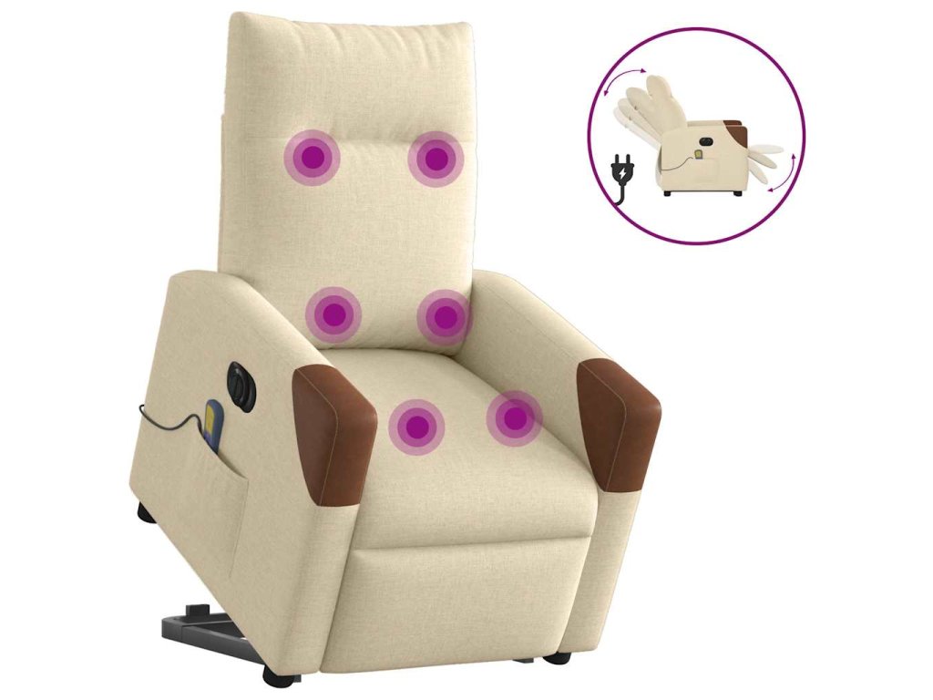 Multidom Zdvíhacie a sklápacie elektrické masážne kreslo, krémové, látka