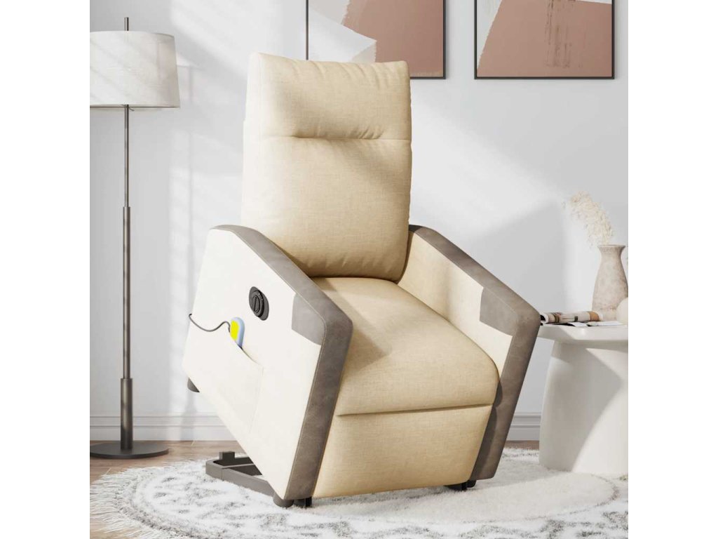 Multidom Zdvíhacie a sklápacie elektrické masážne kreslo, krémové, látka