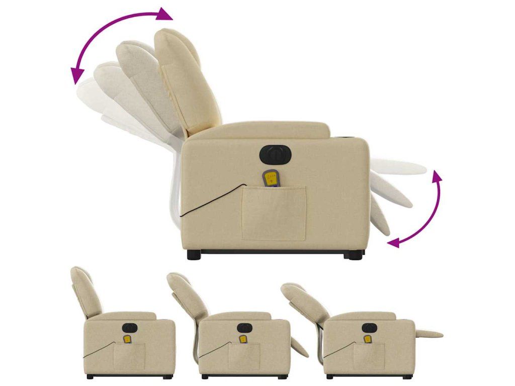 Multidom Zdvíhacie a sklápacie elektrické masážne kreslo, krémové, látka