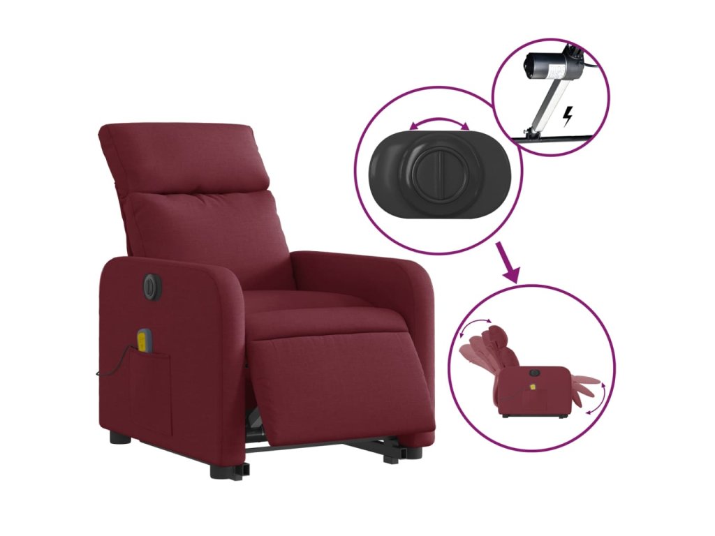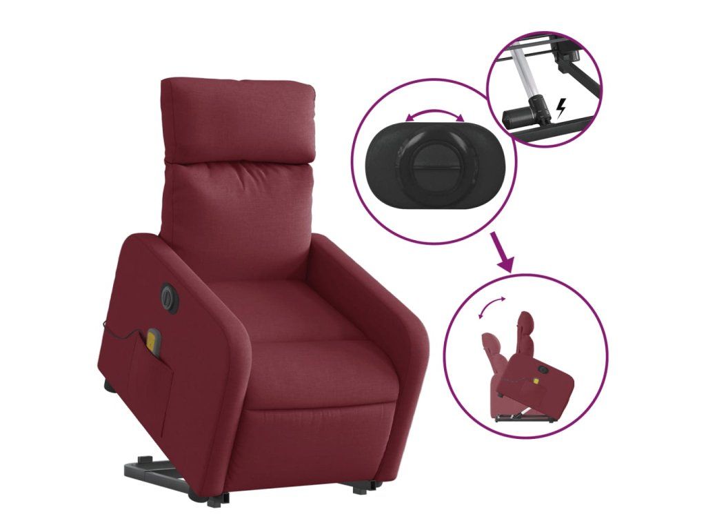 Multidom Zdvíhacie a sklápacie elektrické masážne kreslo, vínové, látka