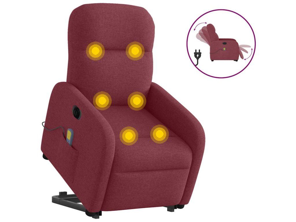 Multidom Zdvíhacie a sklápacie elektrické masážne kreslo, vínové, látka