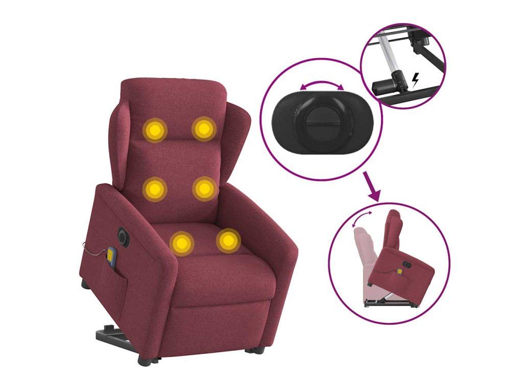 Multidom Zdvíhacie a sklápacie elektrické masážne kreslo, vínové, látka