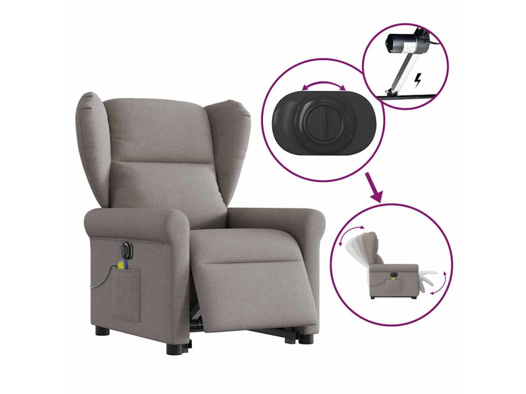 Multidom Zdvíhacie a sklápacie elektrické masážne kreslo sivohnedé látka