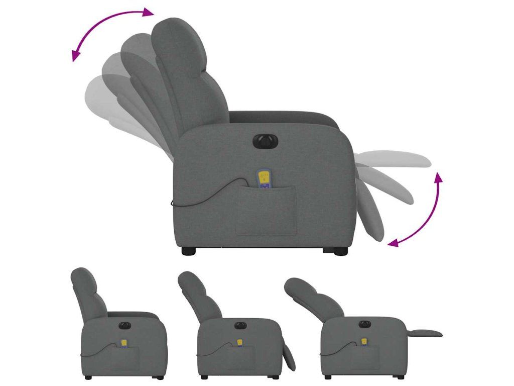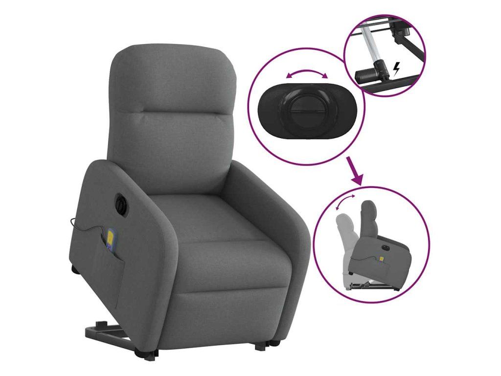 Multidom Zdvíhacie a sklápacie elektrické masážne kreslo tmavosivé látka