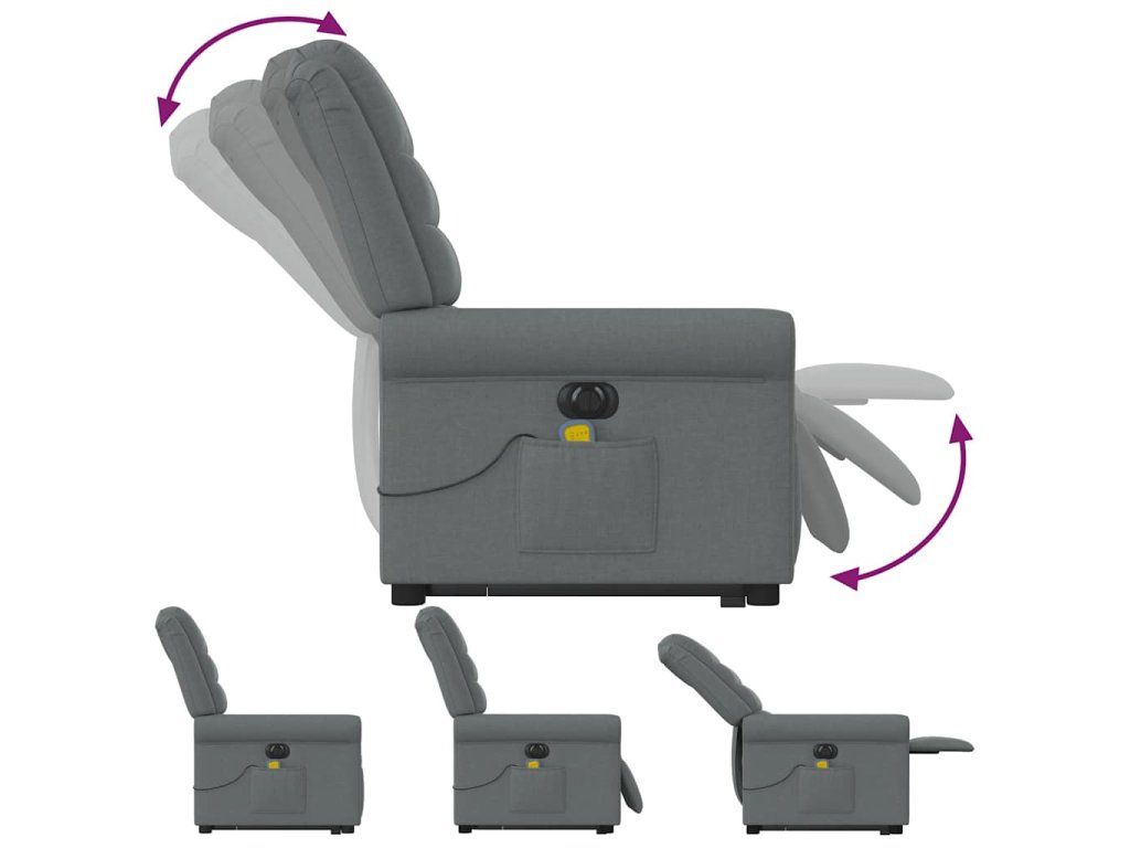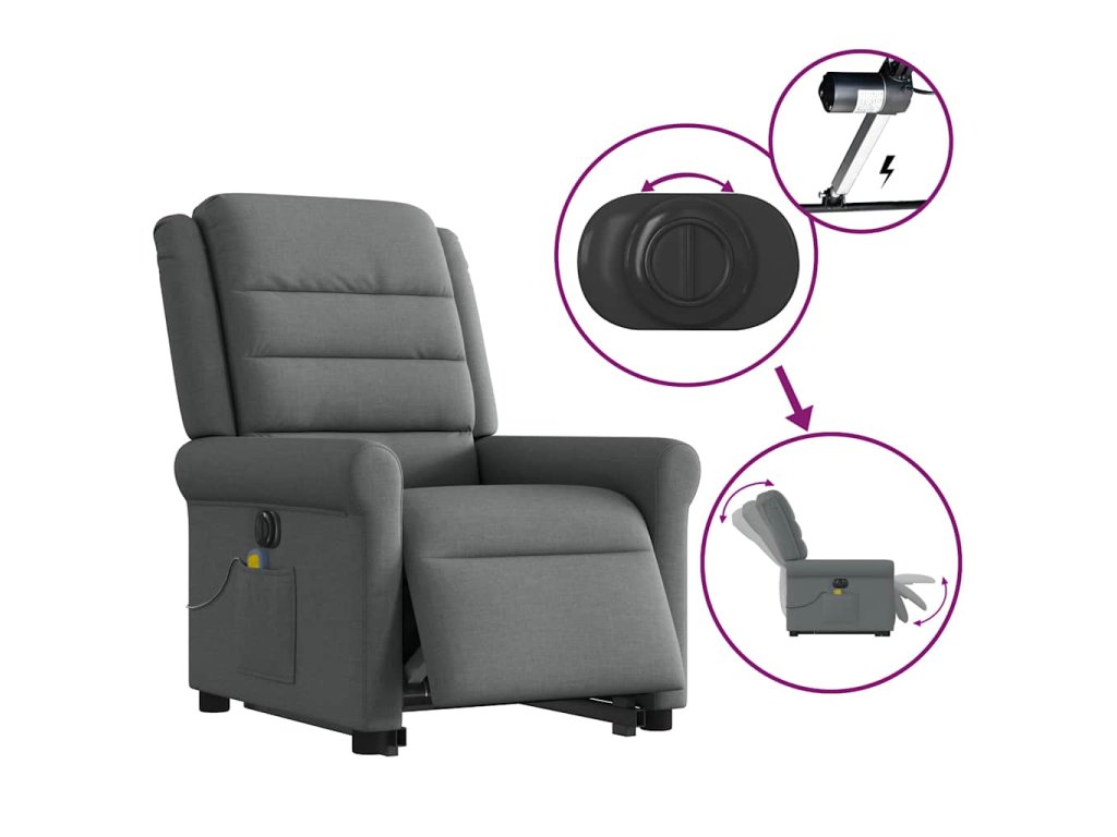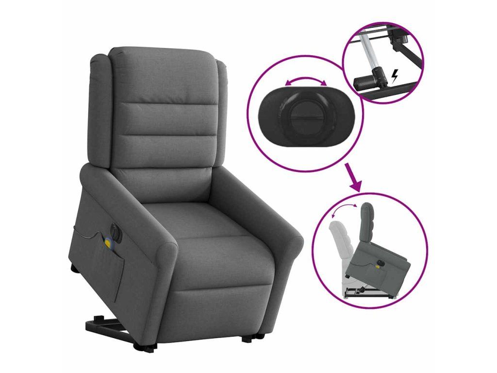 Multidom Zdvíhacie a sklápacie elektrické masážne kreslo tmavosivé látka