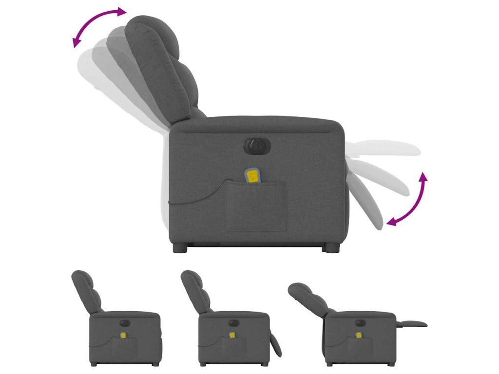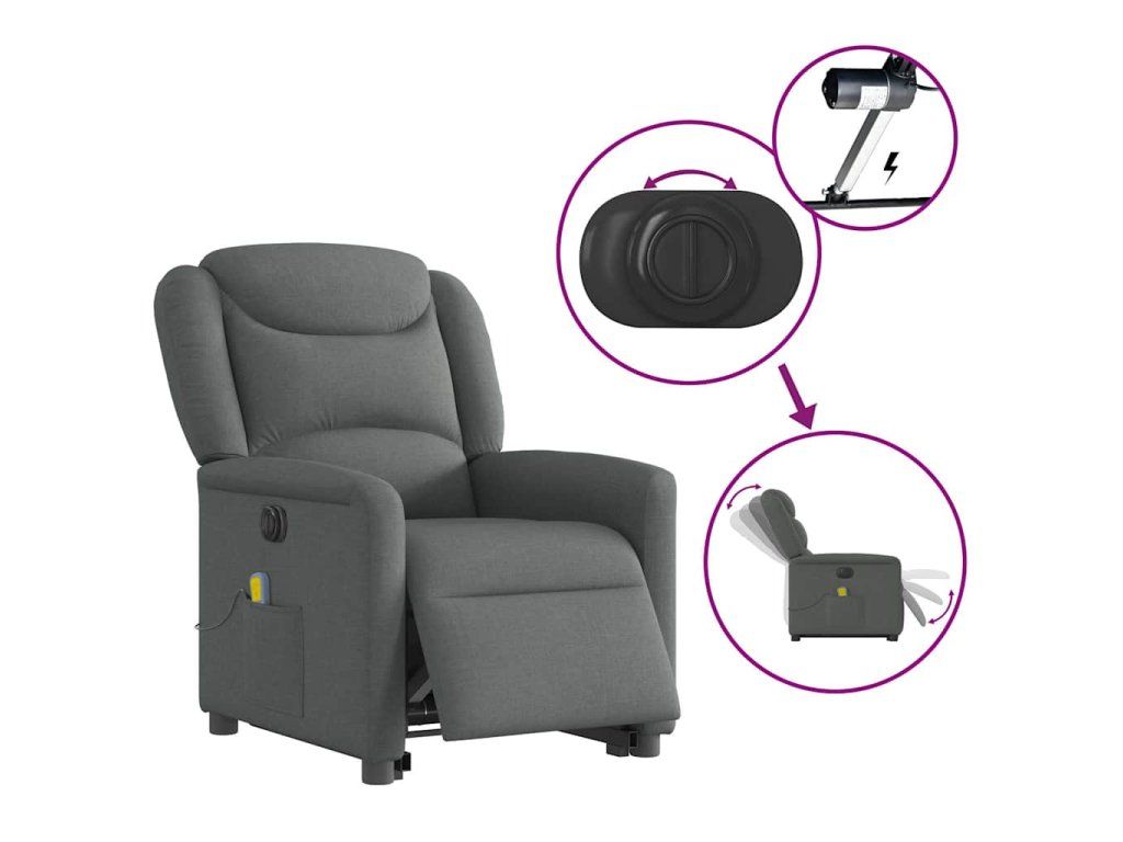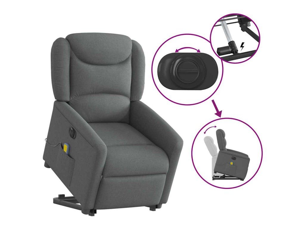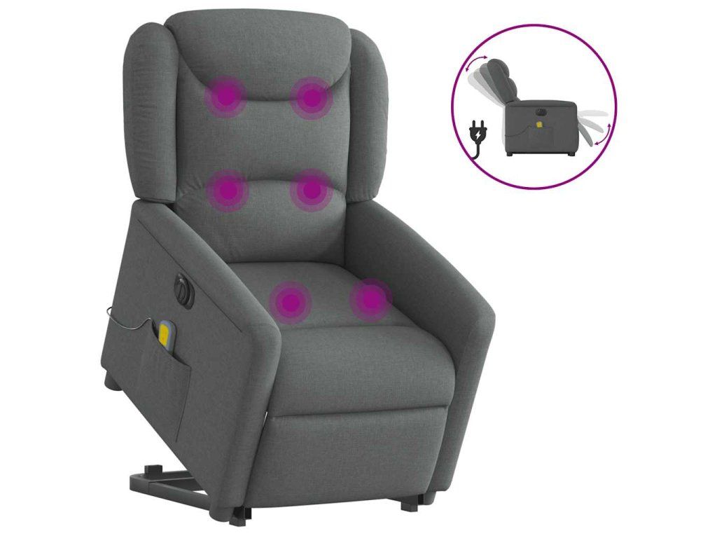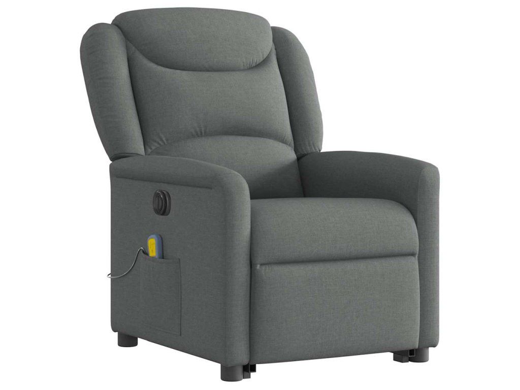 Multidom Zdvíhacie a sklápacie elektrické masážne kreslo tmavosivé látka