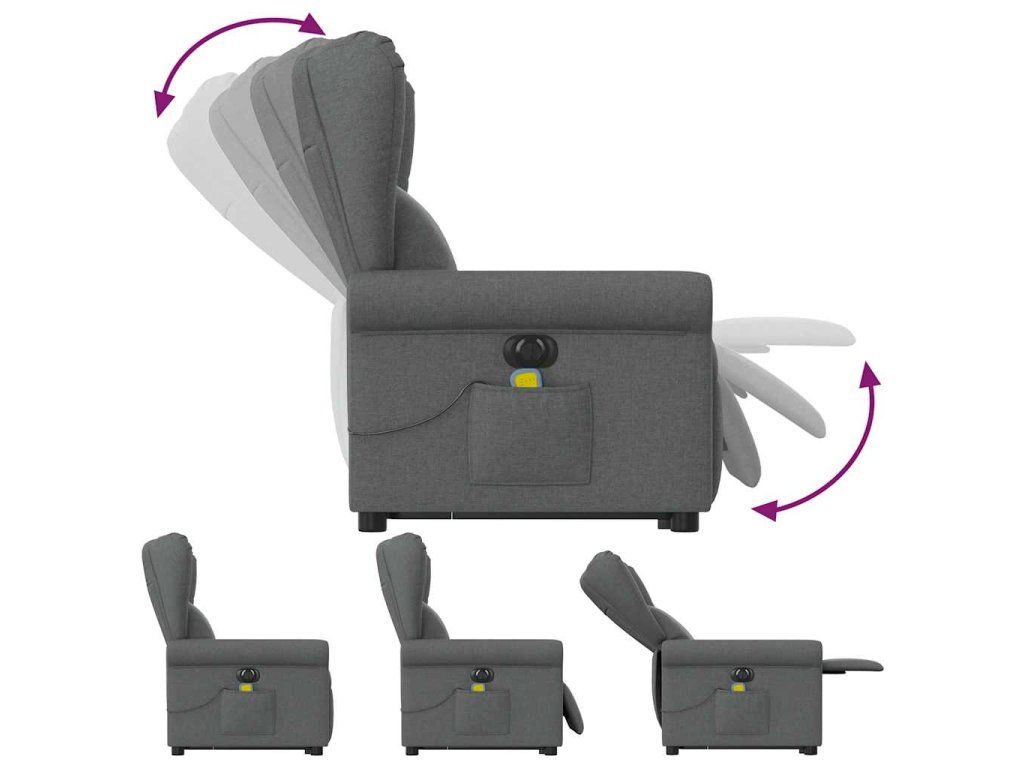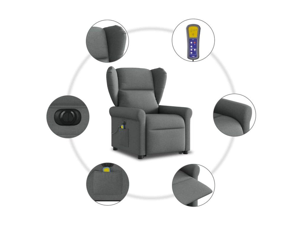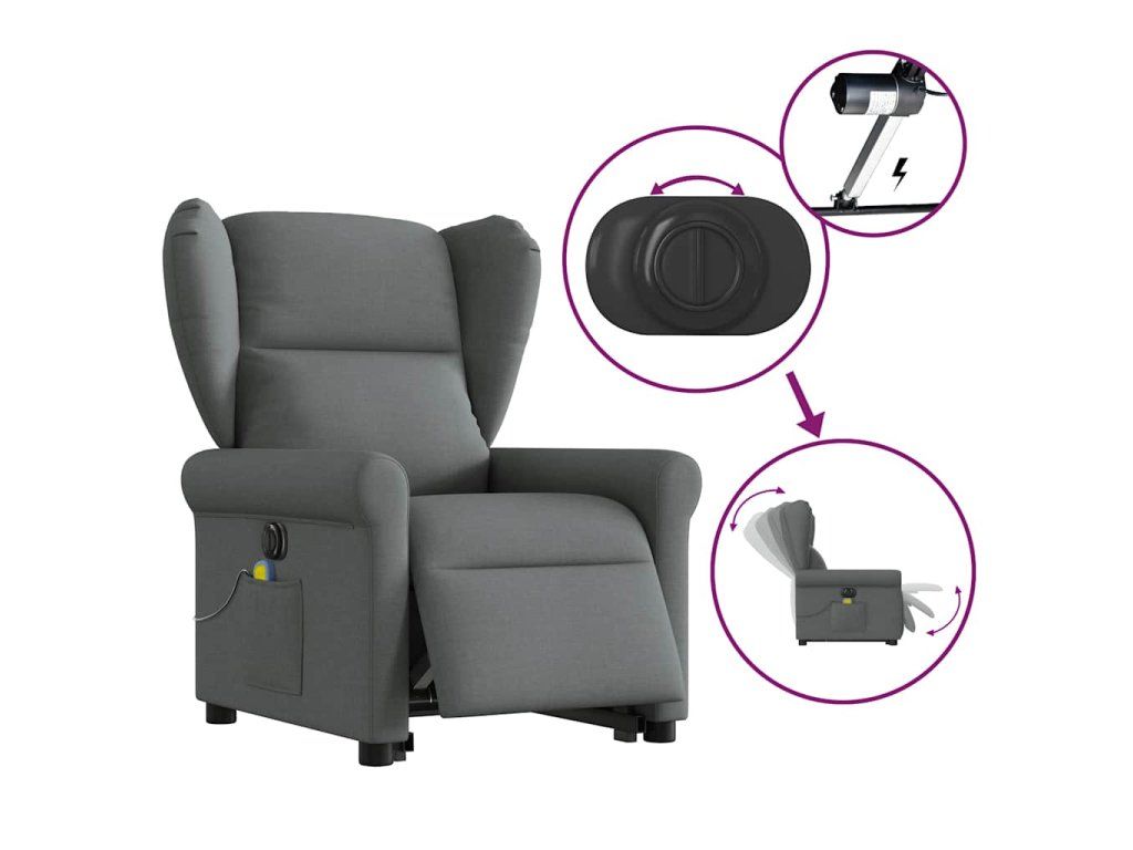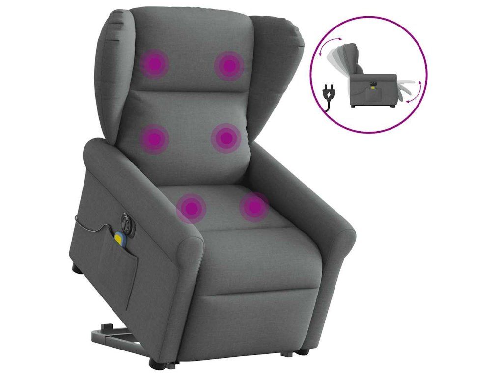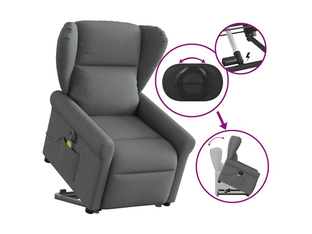 Multidom Zdvíhacie a sklápacie elektrické masážne kreslo tmavosivé látka