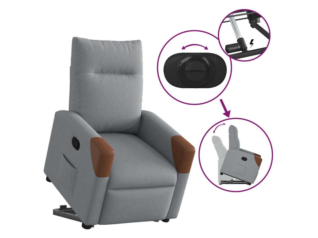 Multidom Zdvíhacie a sklápacie kreslo bledosivé látka