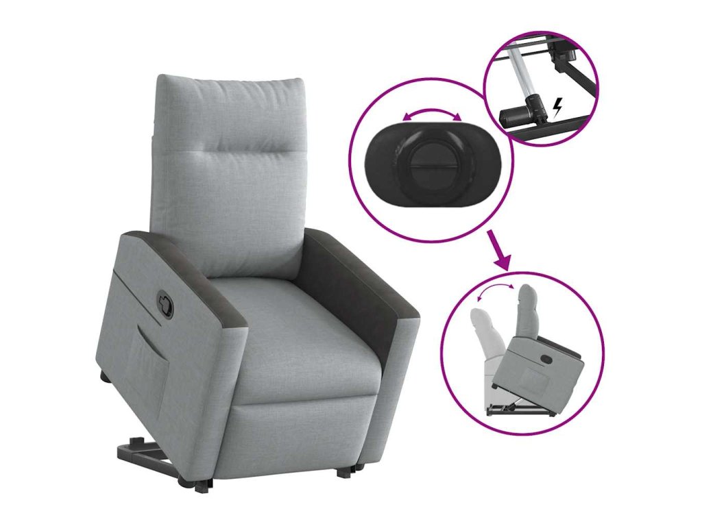 Multidom Zdvíhacie a sklápacie kreslo bledosivé látka