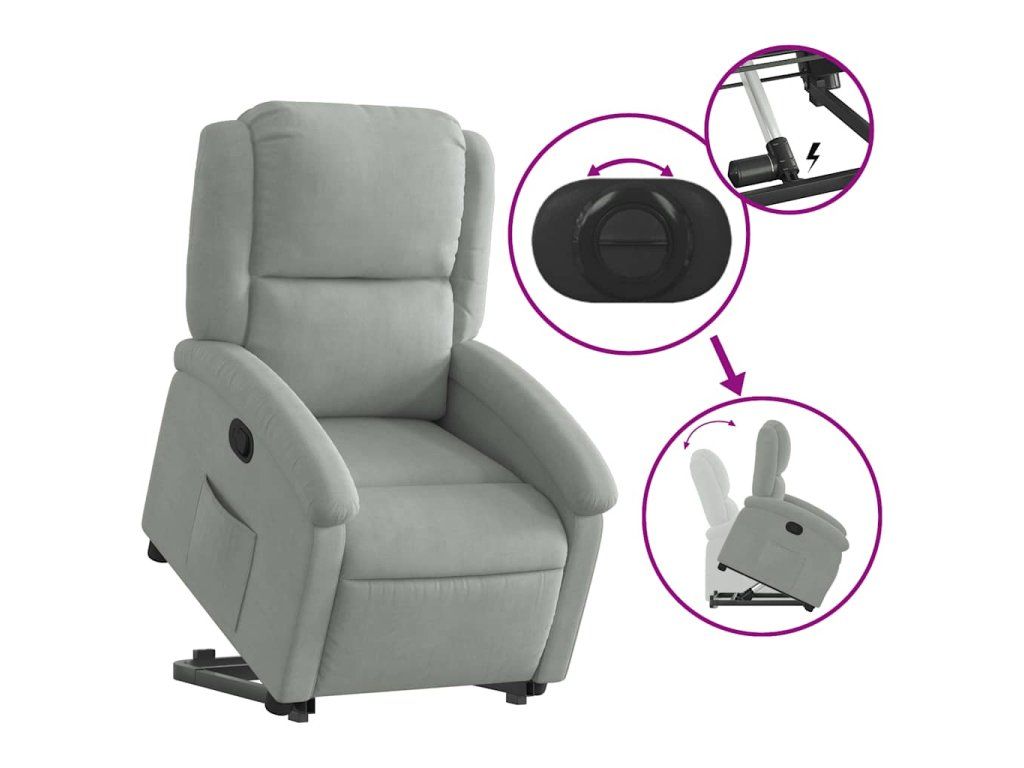Multidom Zdvíhacie a sklápacie kreslo bledosivé zamatové