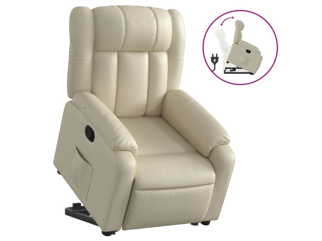 Multidom Zdvíhacie a sklápacie kreslo krémové umelá koža
