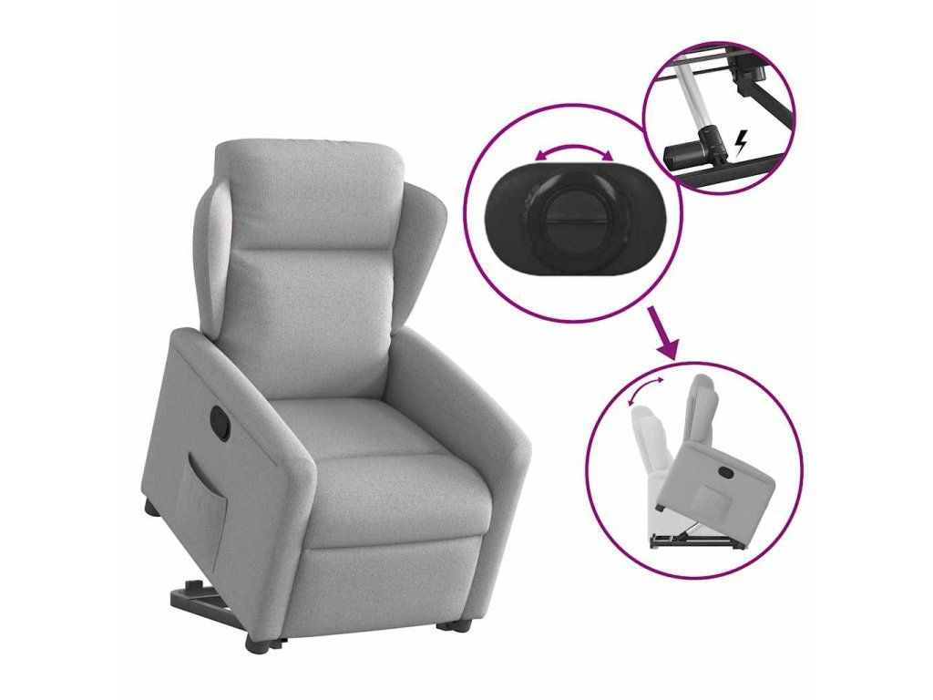 Multidom Zdvíhacie a sklápacie kreslo oblakšedá látka