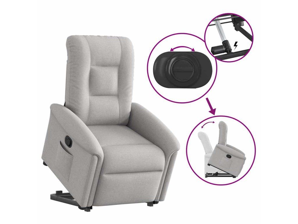 Multidom Zdvíhacie a sklápacie kreslo oblakšedá látka