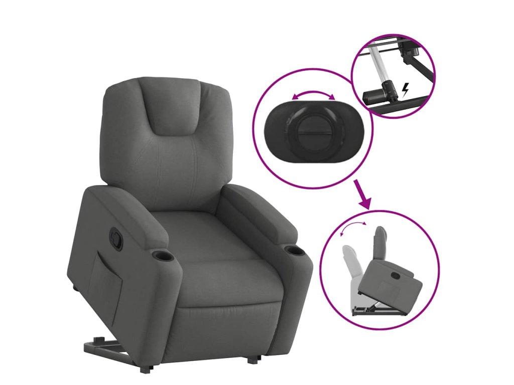 Multidom Zdvíhacie a sklápacie kreslo tmavosivé látka