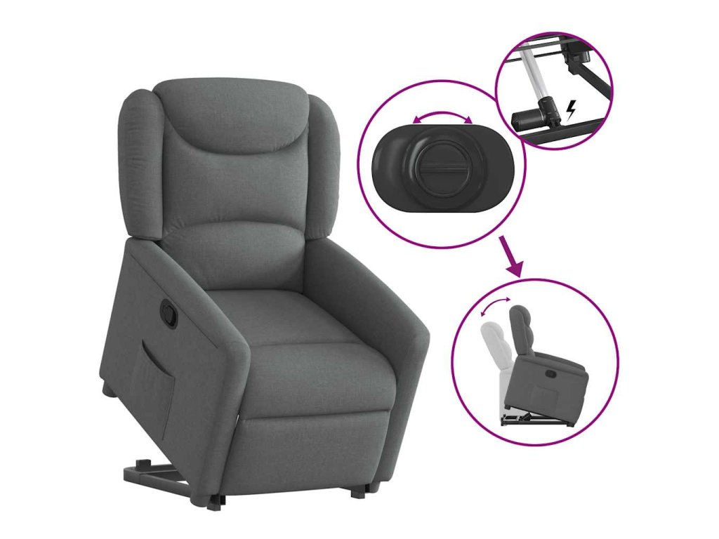 Multidom Zdvíhacie a sklápacie kreslo tmavosivé látka