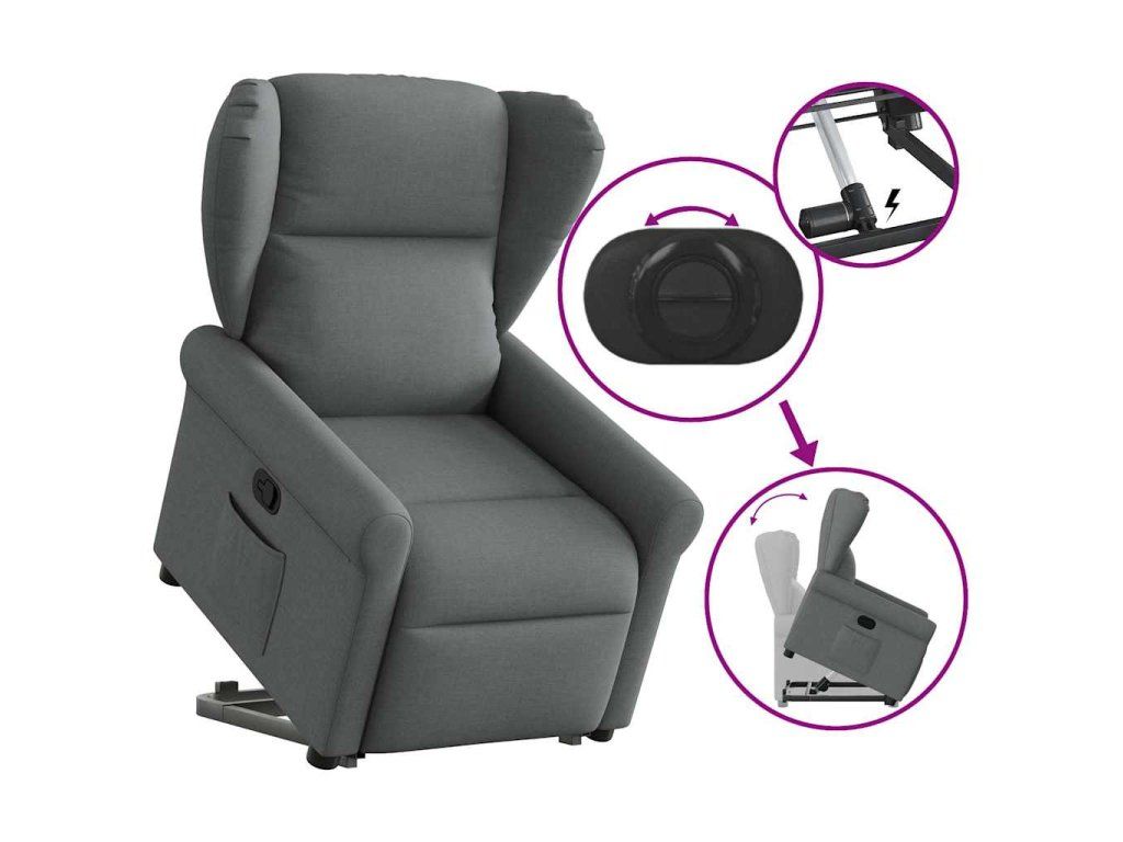 Multidom Zdvíhacie a sklápacie kreslo tmavosivé látka