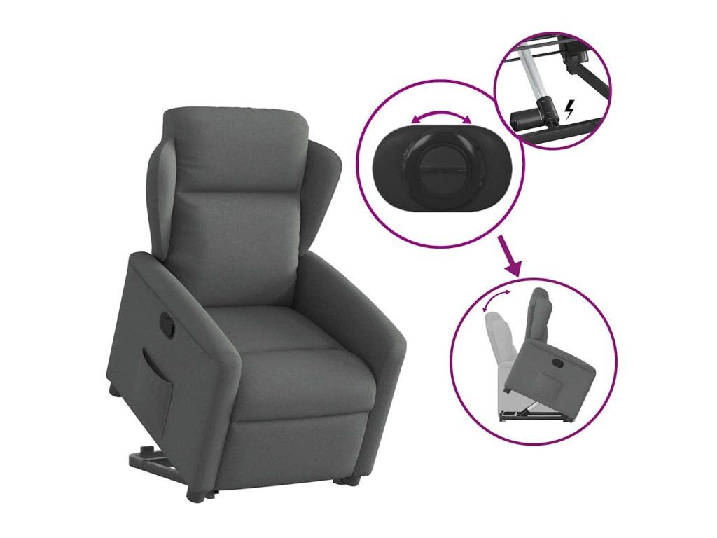 Multidom Zdvíhacie a sklápacie kreslo tmavosivé látka