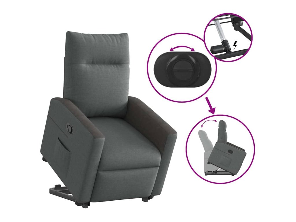 Multidom Zdvíhacie a sklápacie kreslo tmavosivé látka