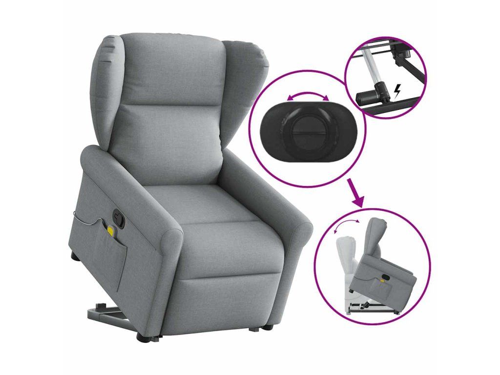 Multidom Zdvíhacie a sklápacie masážne kreslo bledosivé látka