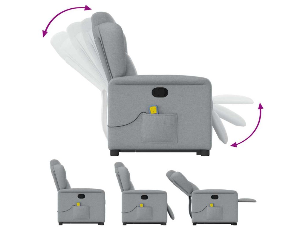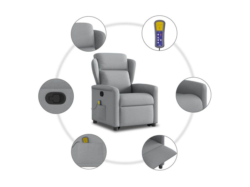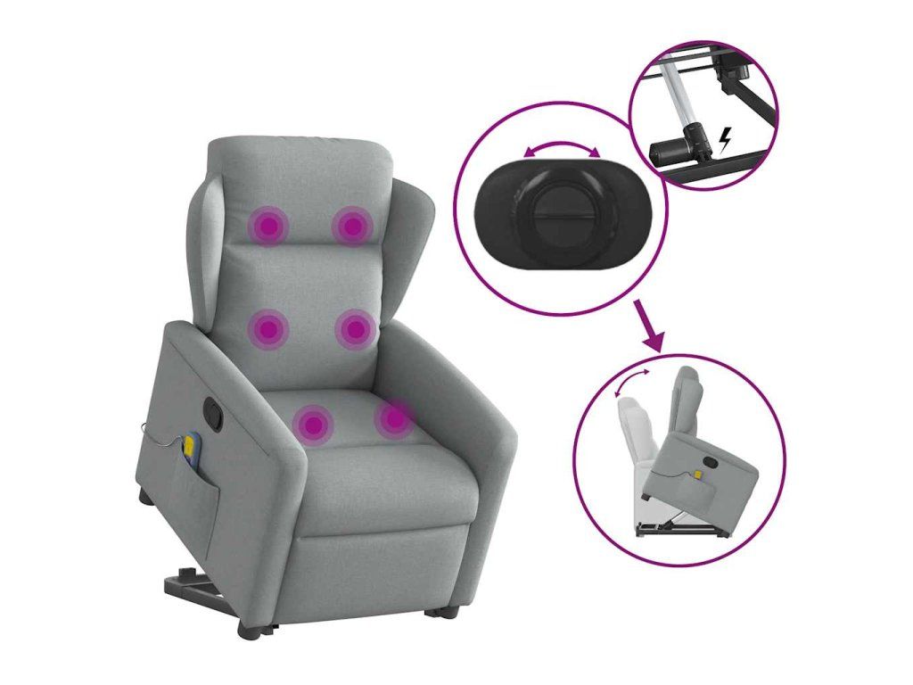 Multidom Zdvíhacie a sklápacie masážne kreslo bledosivé látka