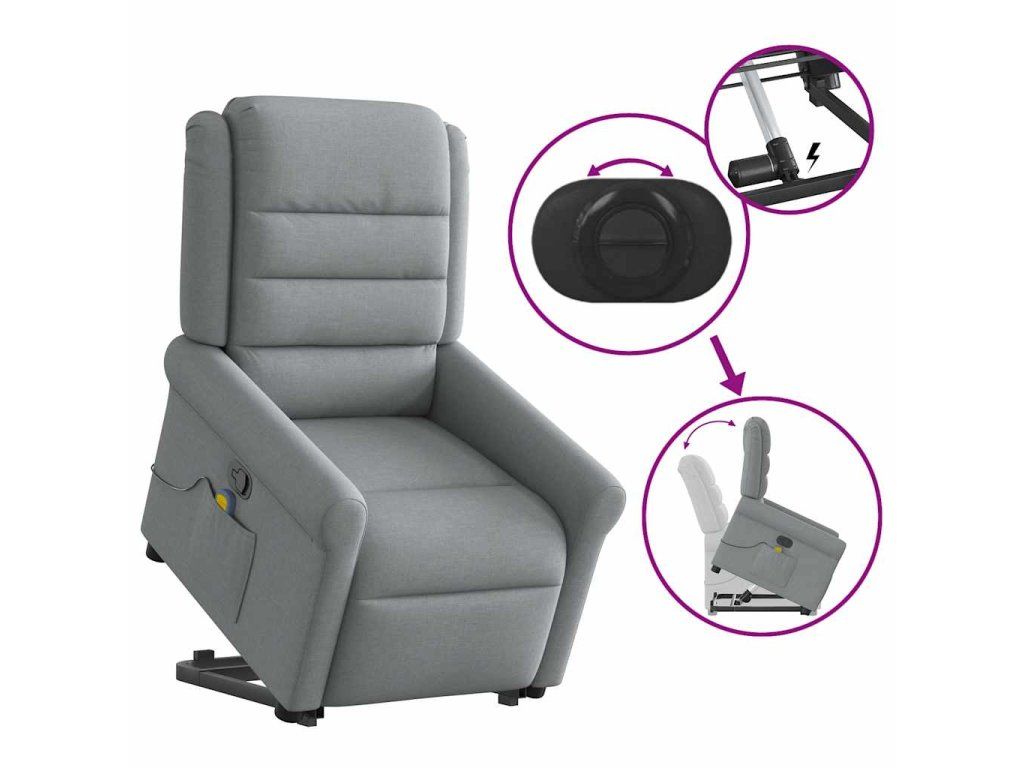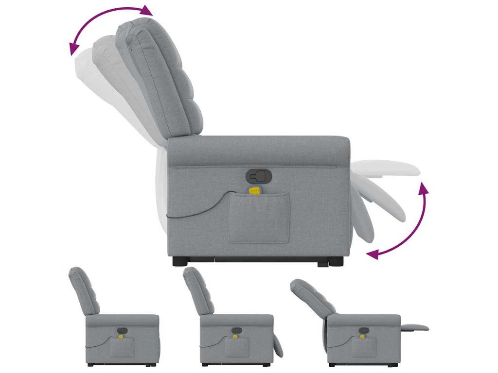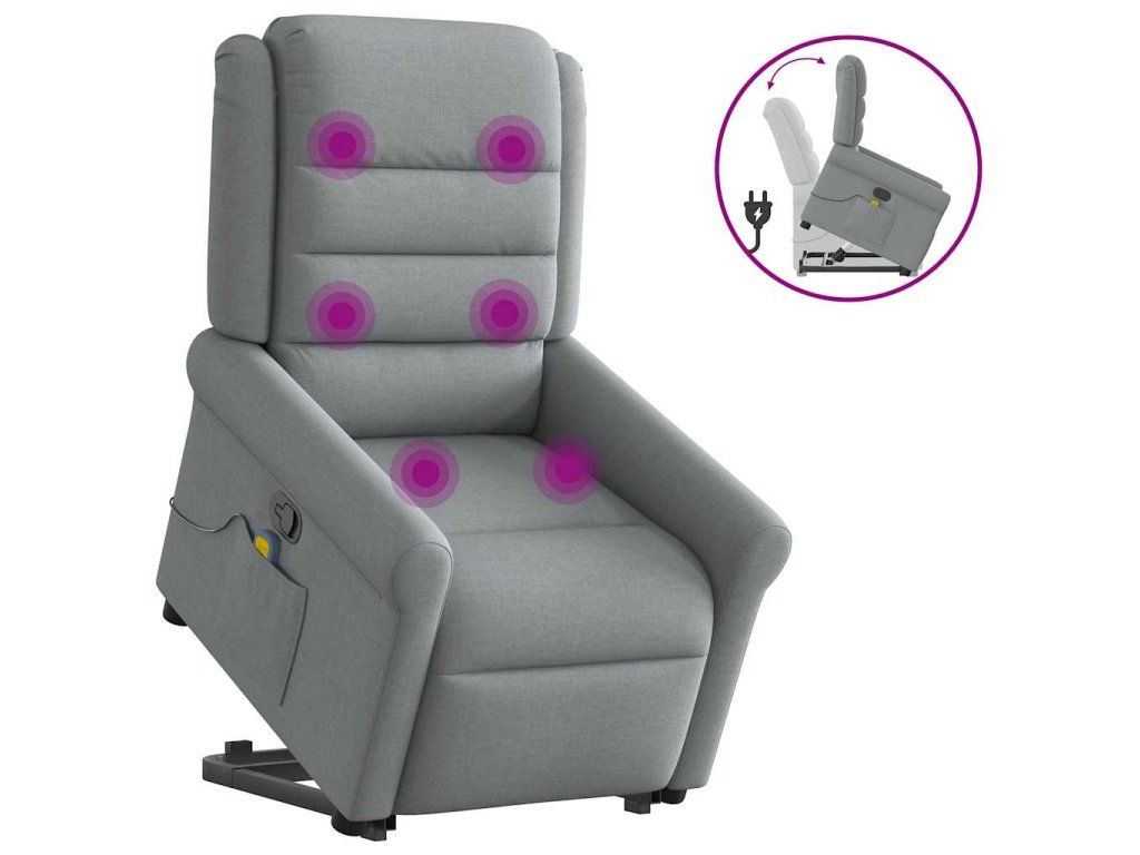 Multidom Zdvíhacie a sklápacie masážne kreslo bledosivé látka
