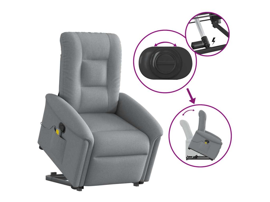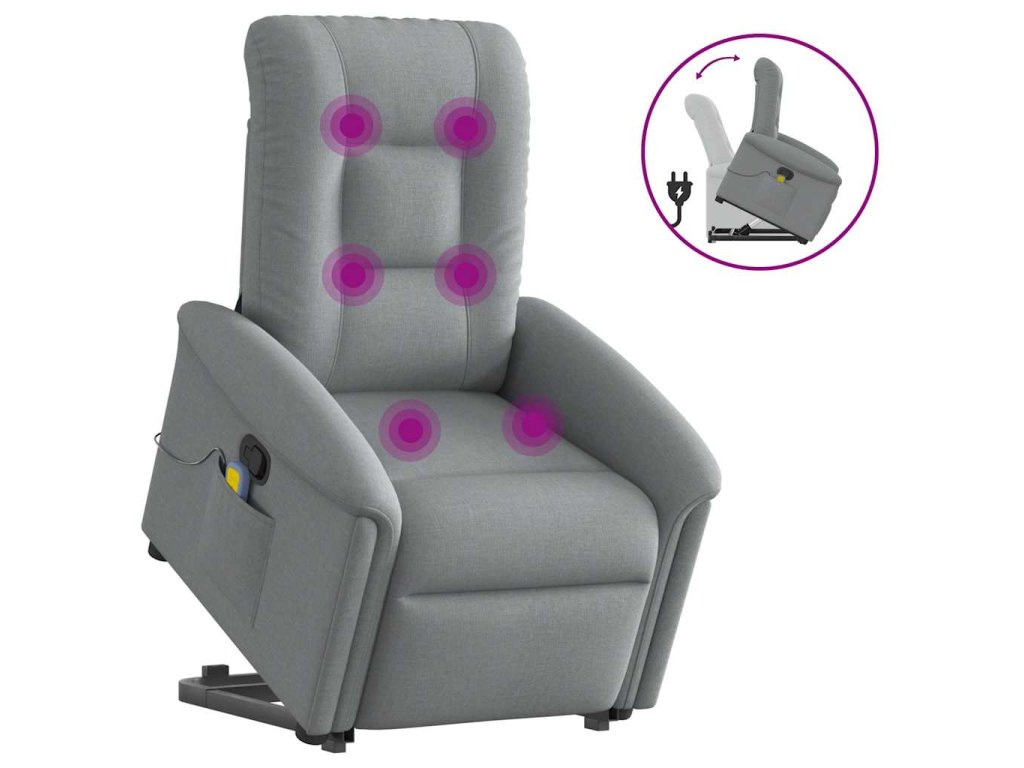 Multidom Zdvíhacie a sklápacie masážne kreslo bledosivé látka