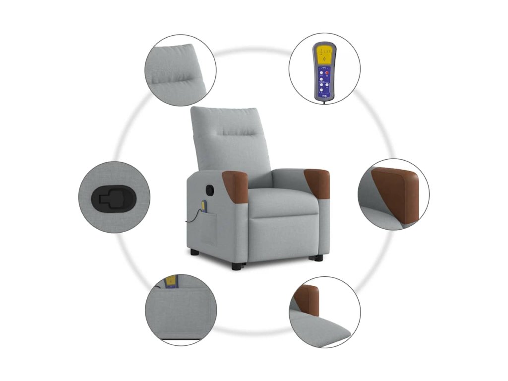 Multidom Zdvíhacie a sklápacie masážne kreslo bledosivé látka