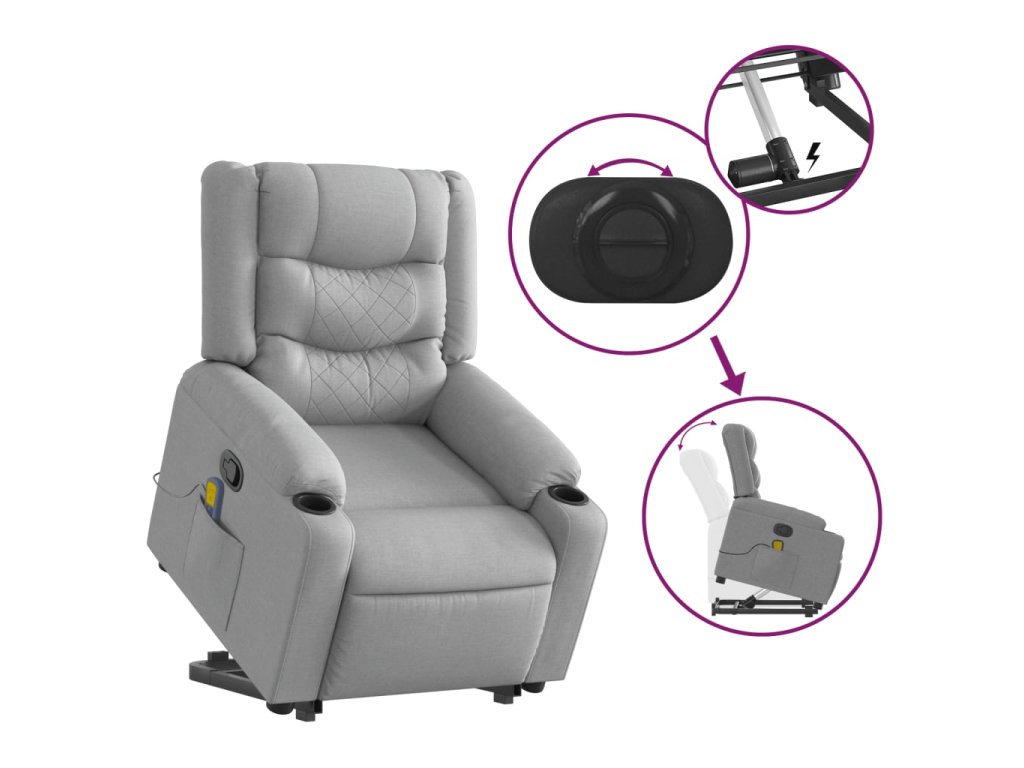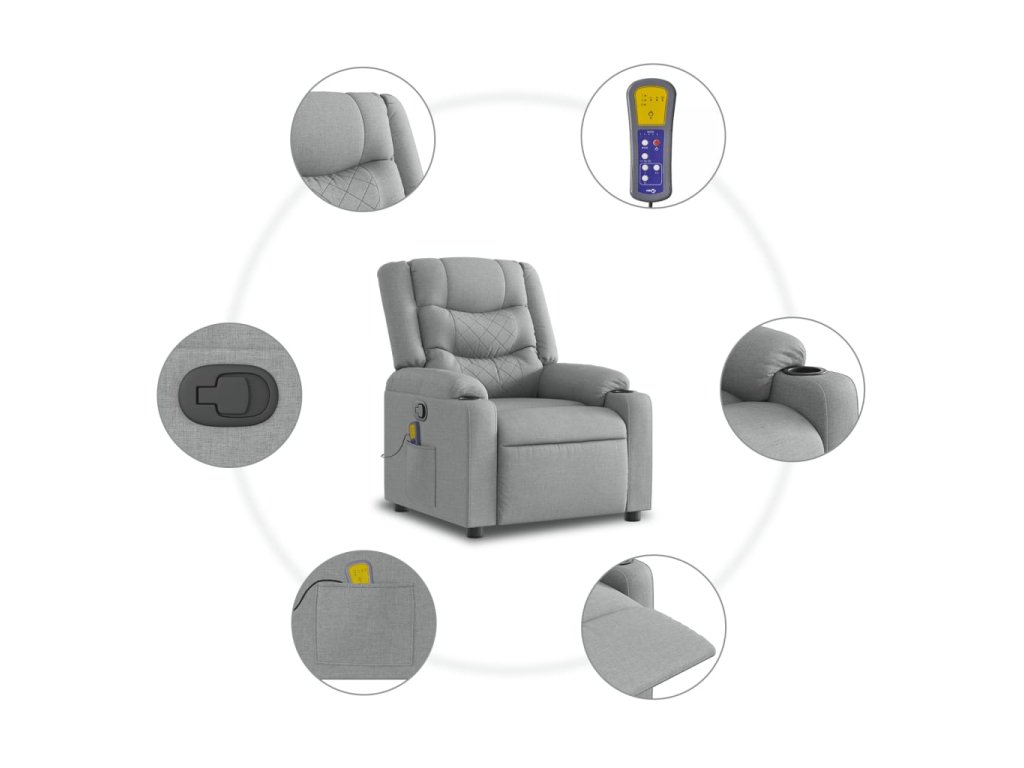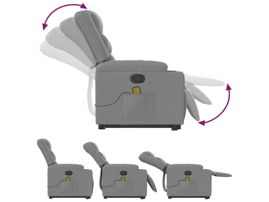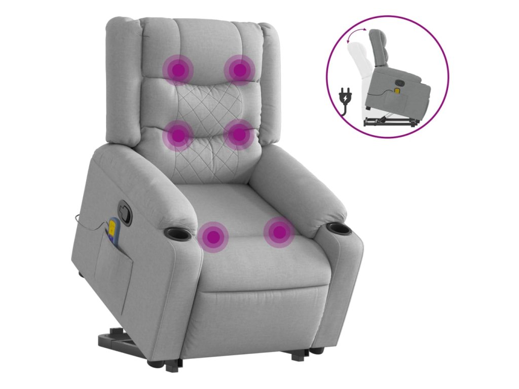 Multidom Zdvíhacie a sklápacie masážne kreslo bledosivé látka