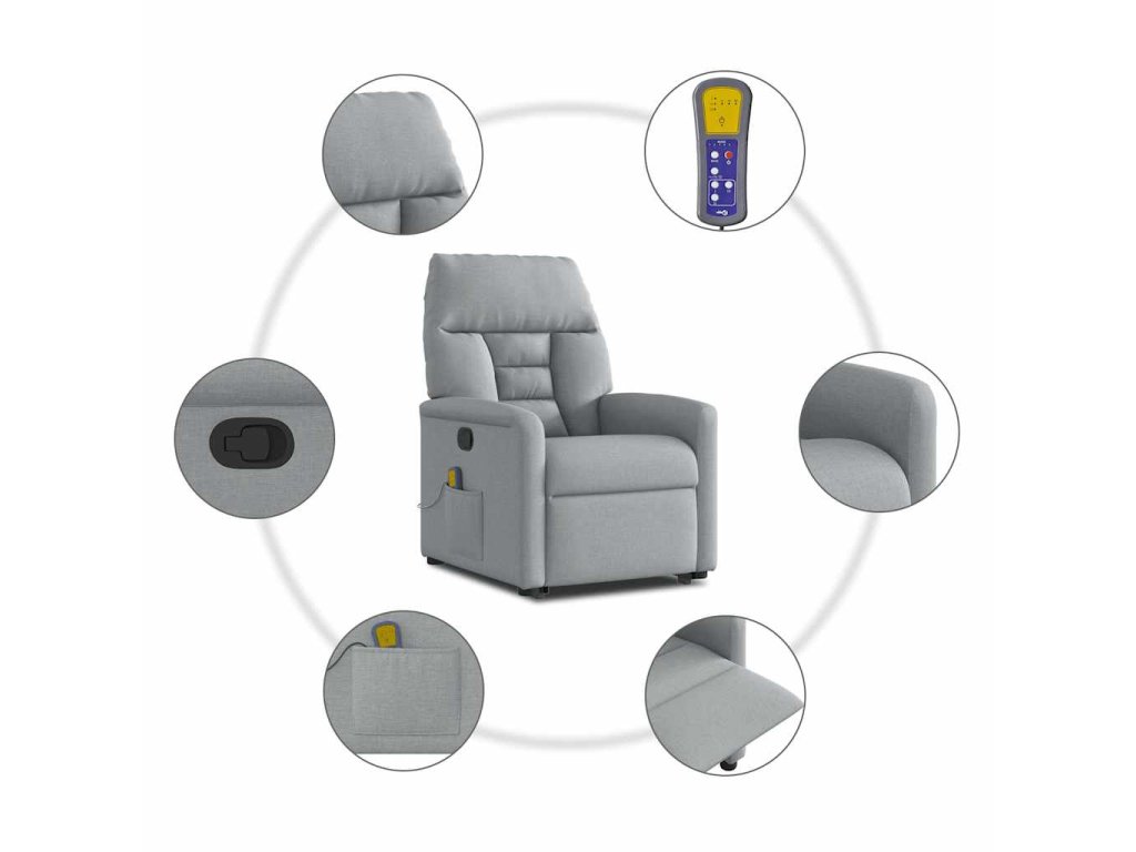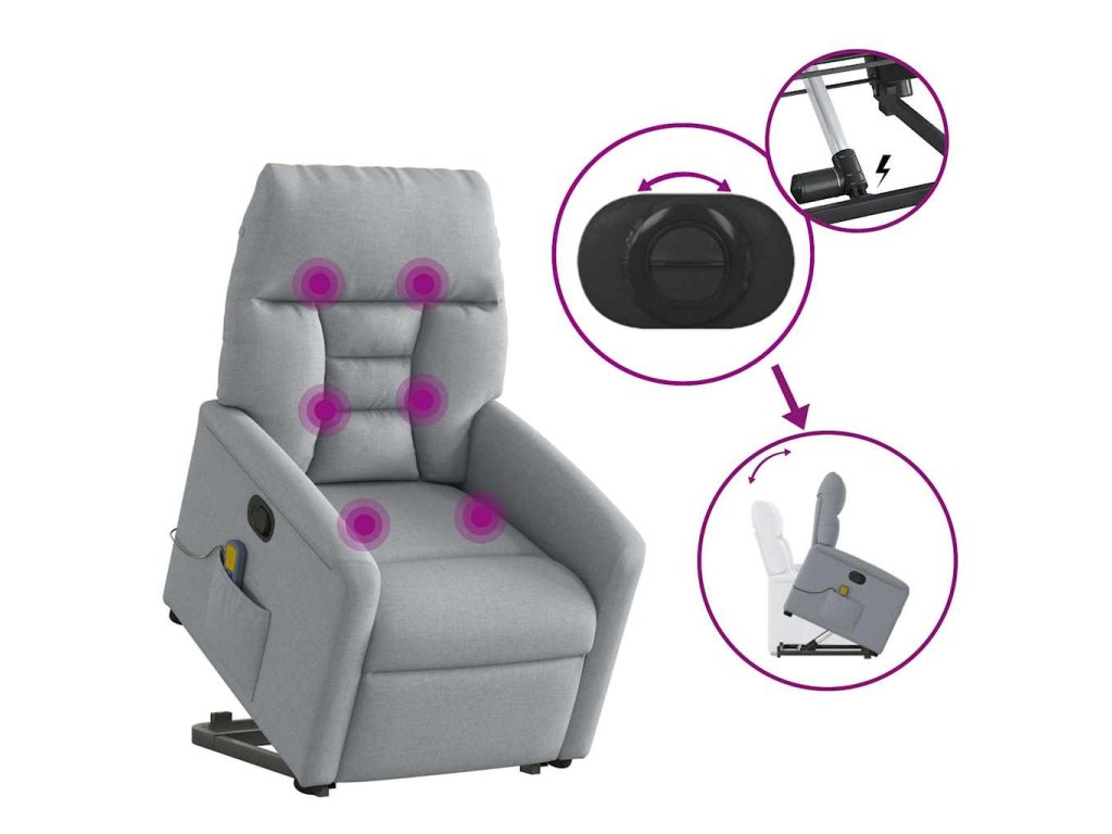 Multidom Zdvíhacie a sklápacie masážne kreslo bledosivé látka