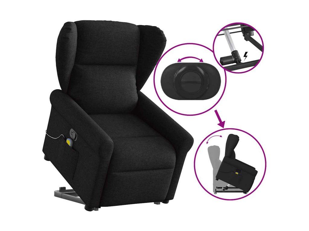 Multidom Zdvíhacie a sklápacie masážne kreslo čierne látkové