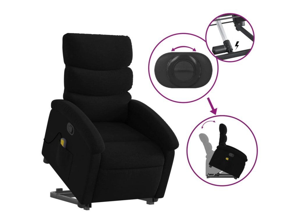 Multidom Zdvíhacie a sklápacie masážne kreslo čierne látkové