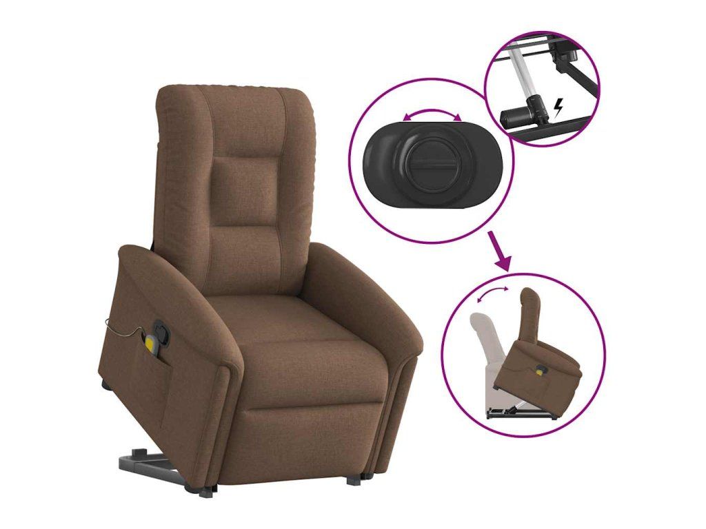 Multidom Zdvíhacie a sklápacie masážne kreslo hnedé látka