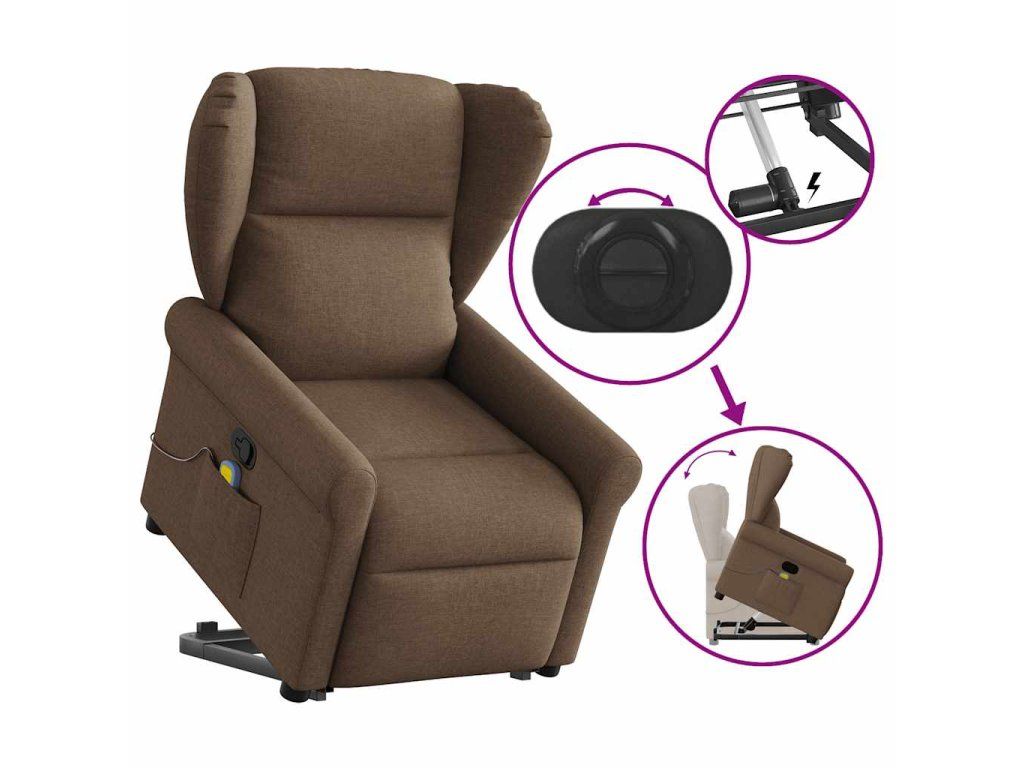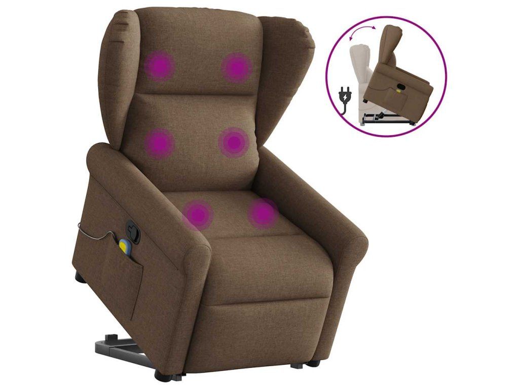 Multidom Zdvíhacie a sklápacie masážne kreslo hnedé látka