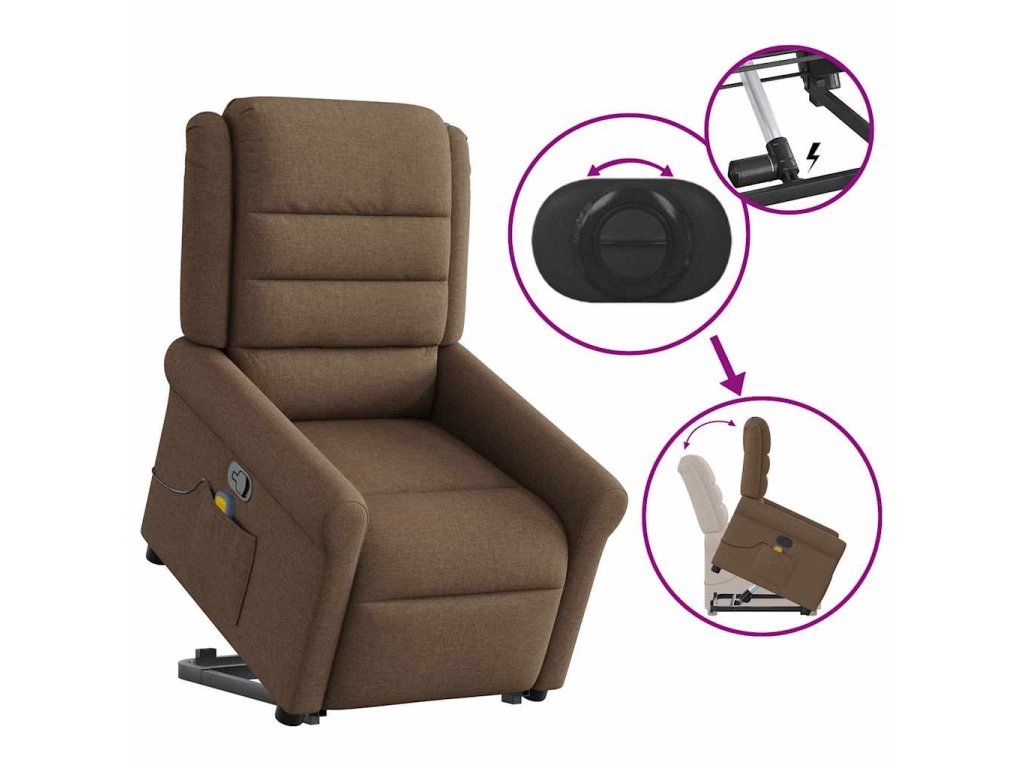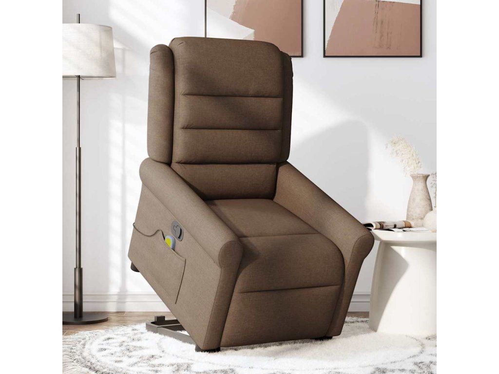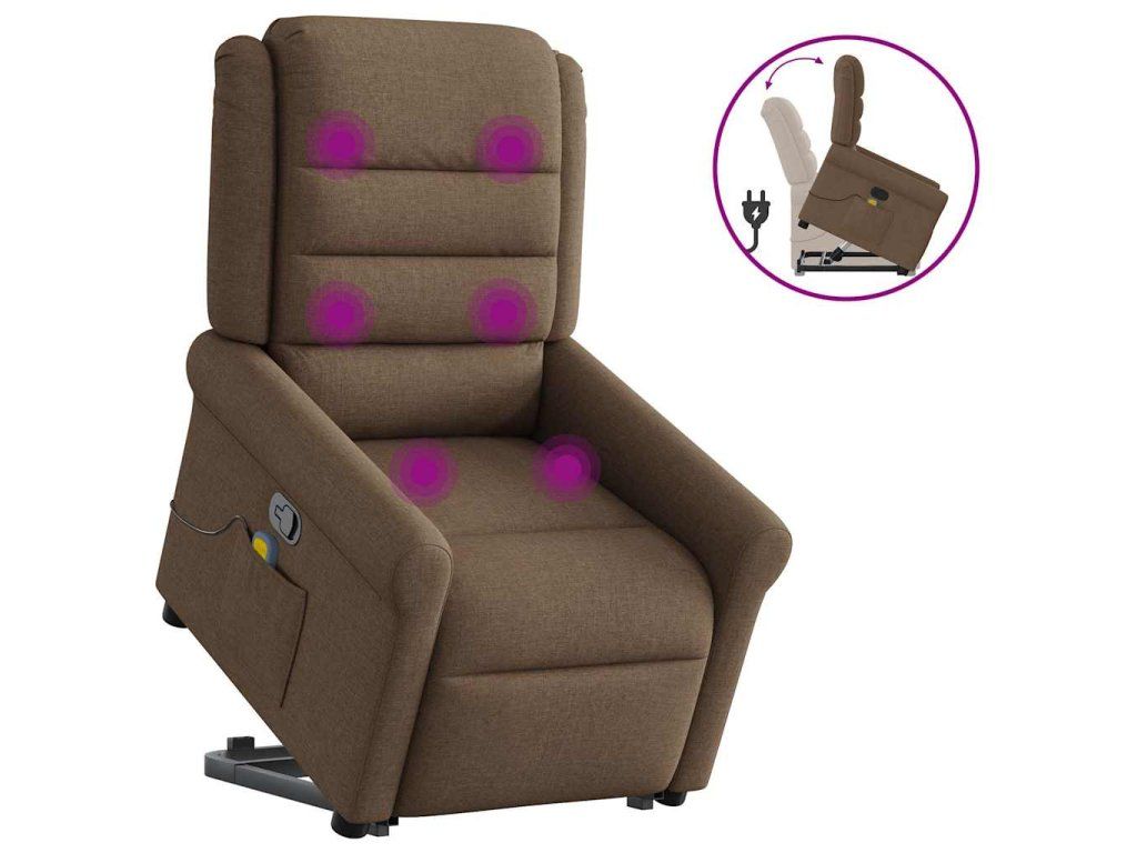 Multidom Zdvíhacie a sklápacie masážne kreslo hnedé látka
