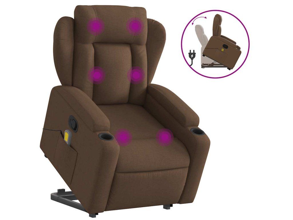 Multidom Zdvíhacie a sklápacie masážne kreslo hnedé látka