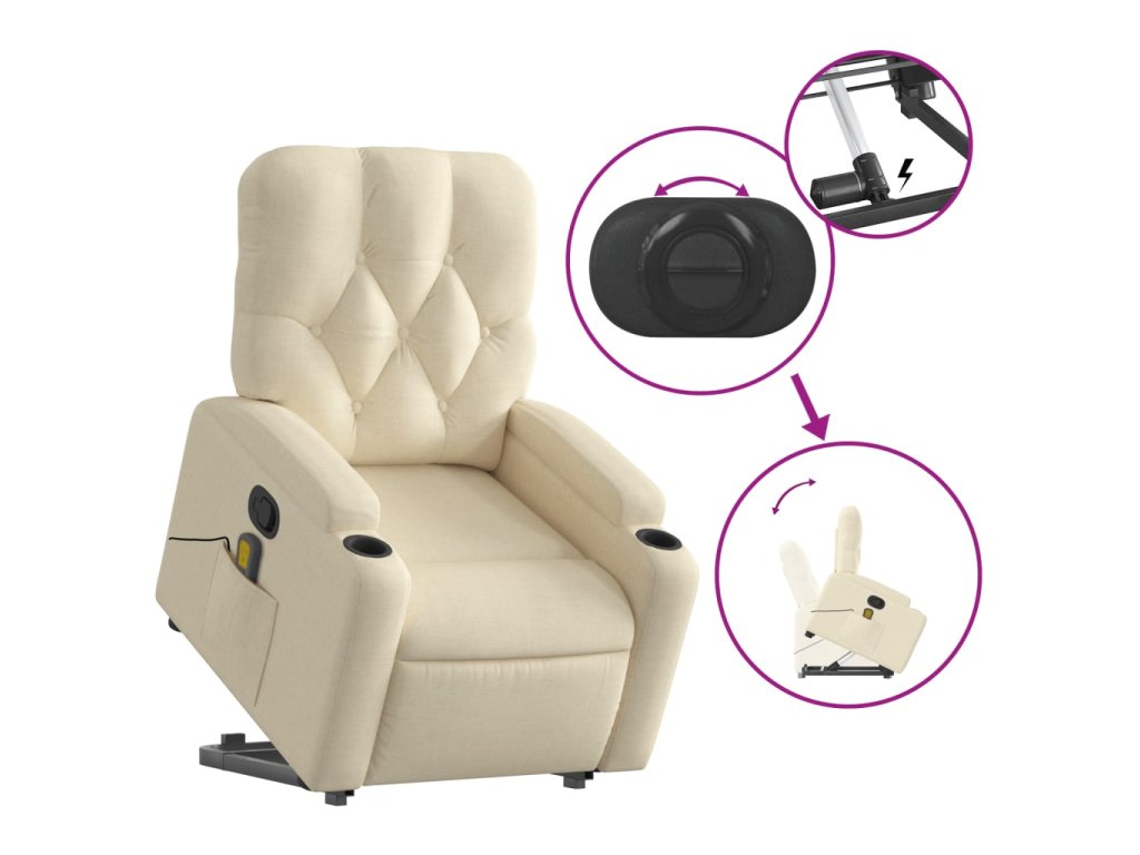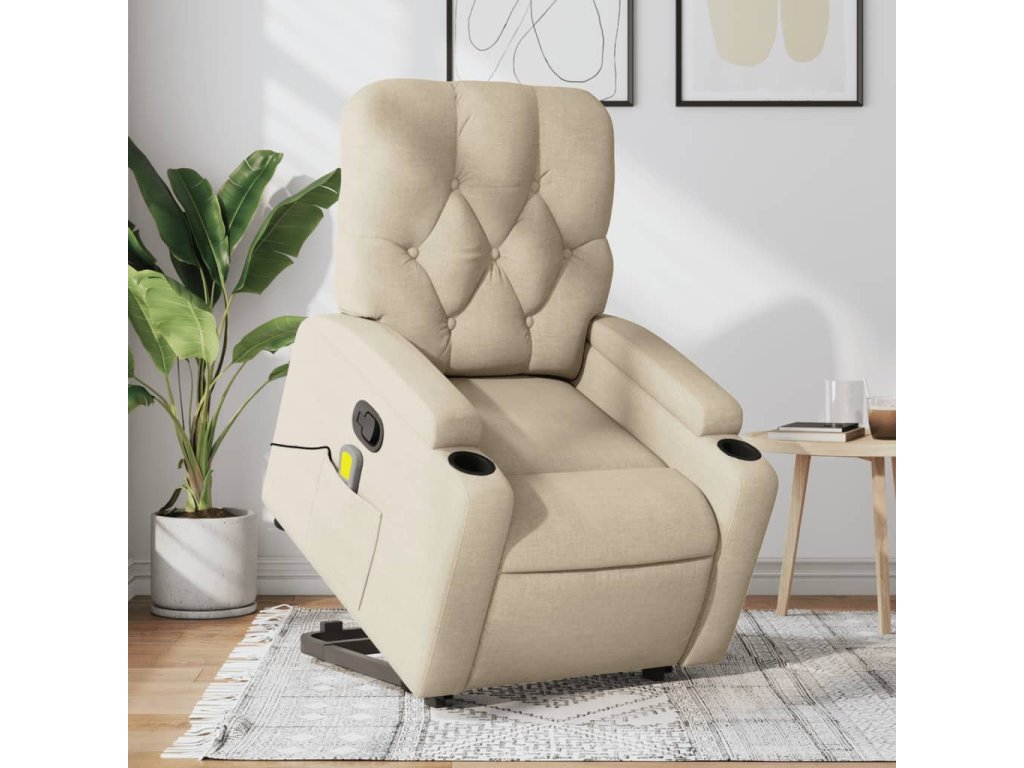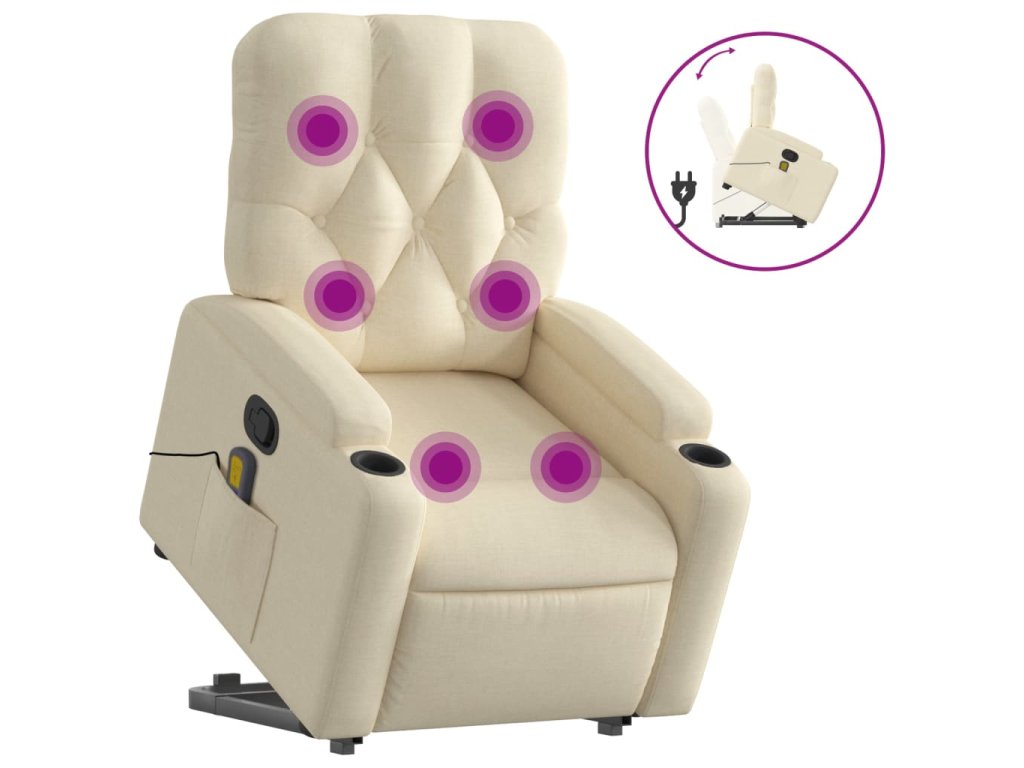 Multidom Zdvíhacie a sklápacie masážne kreslo krémové látka