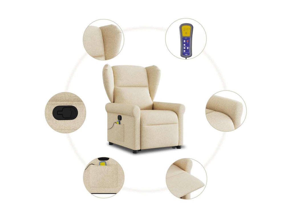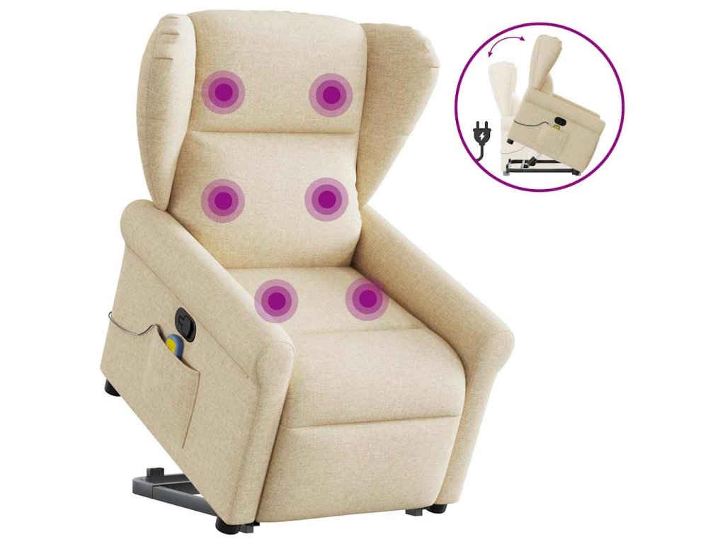 Multidom Zdvíhacie a sklápacie masážne kreslo krémové látka