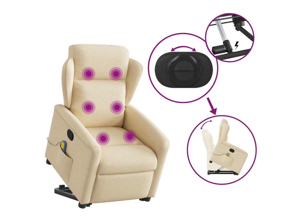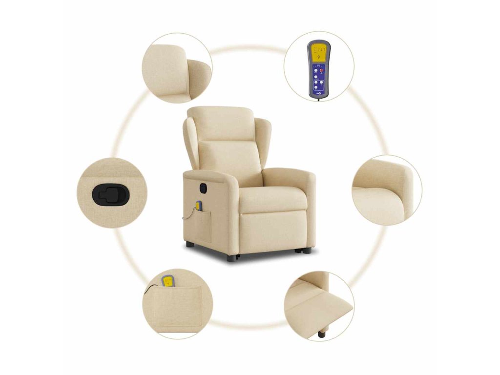 Multidom Zdvíhacie a sklápacie masážne kreslo krémové látka