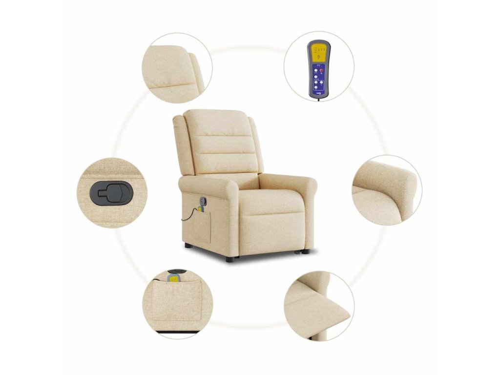 Multidom Zdvíhacie a sklápacie masážne kreslo krémové látka
