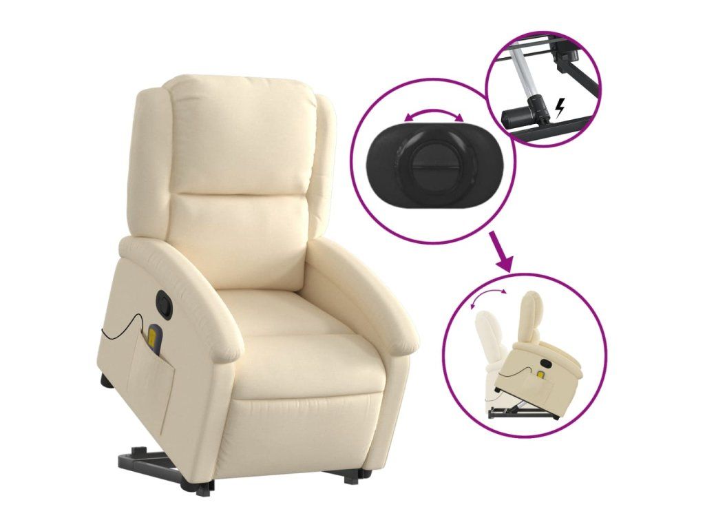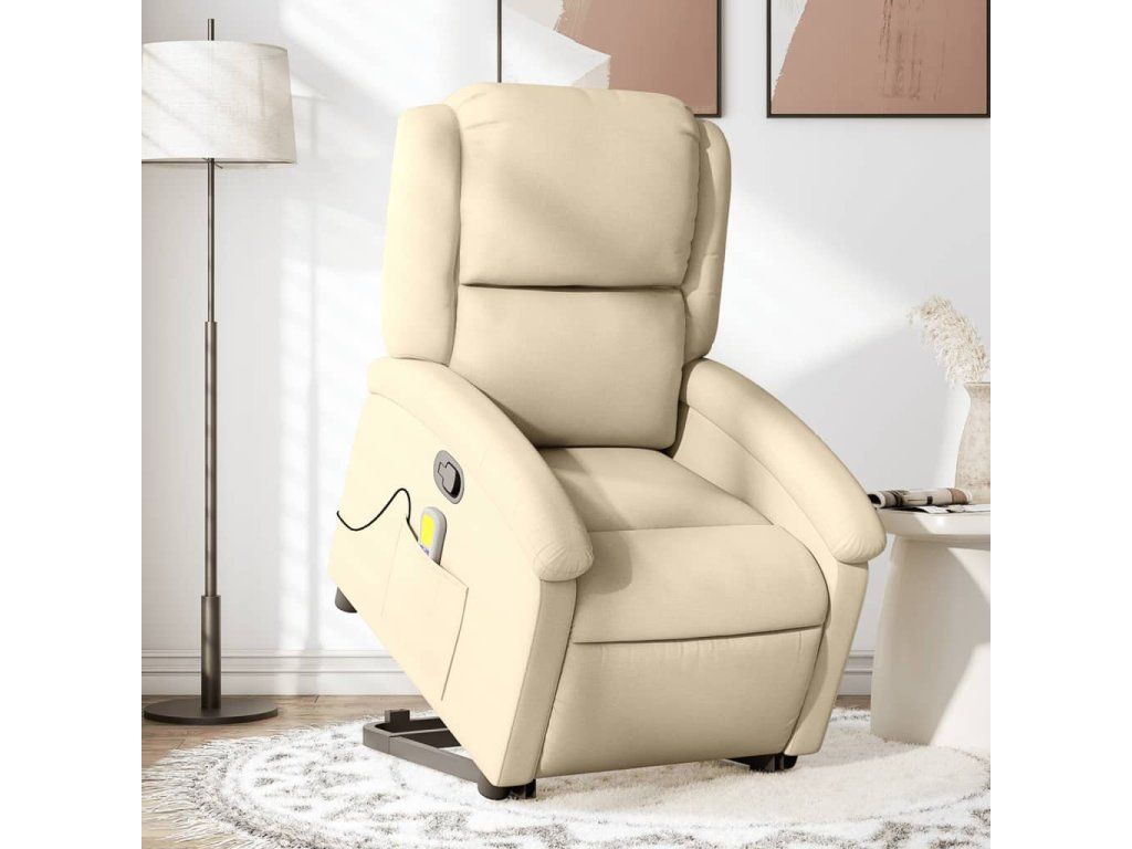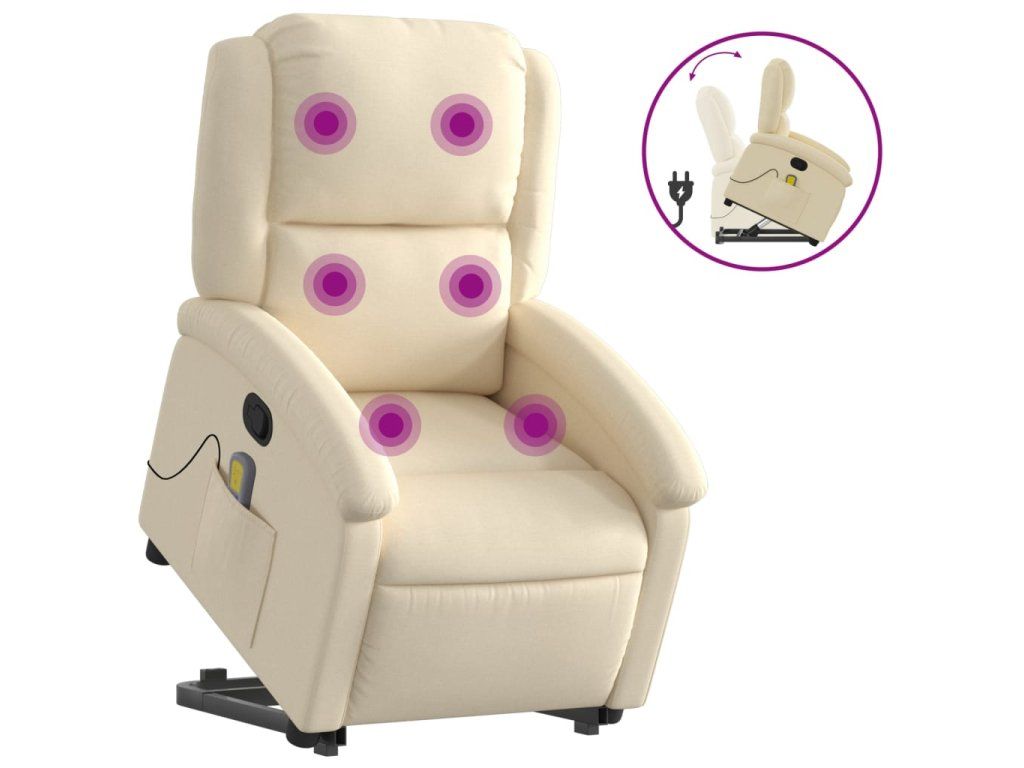 Multidom Zdvíhacie a sklápacie masážne kreslo krémové látka