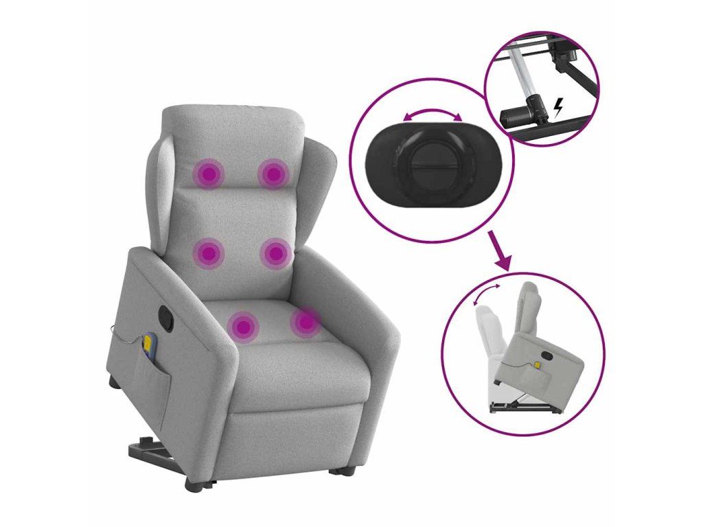 Multidom Zdvíhacie a sklápacie masážne kreslo oblakšedá látka