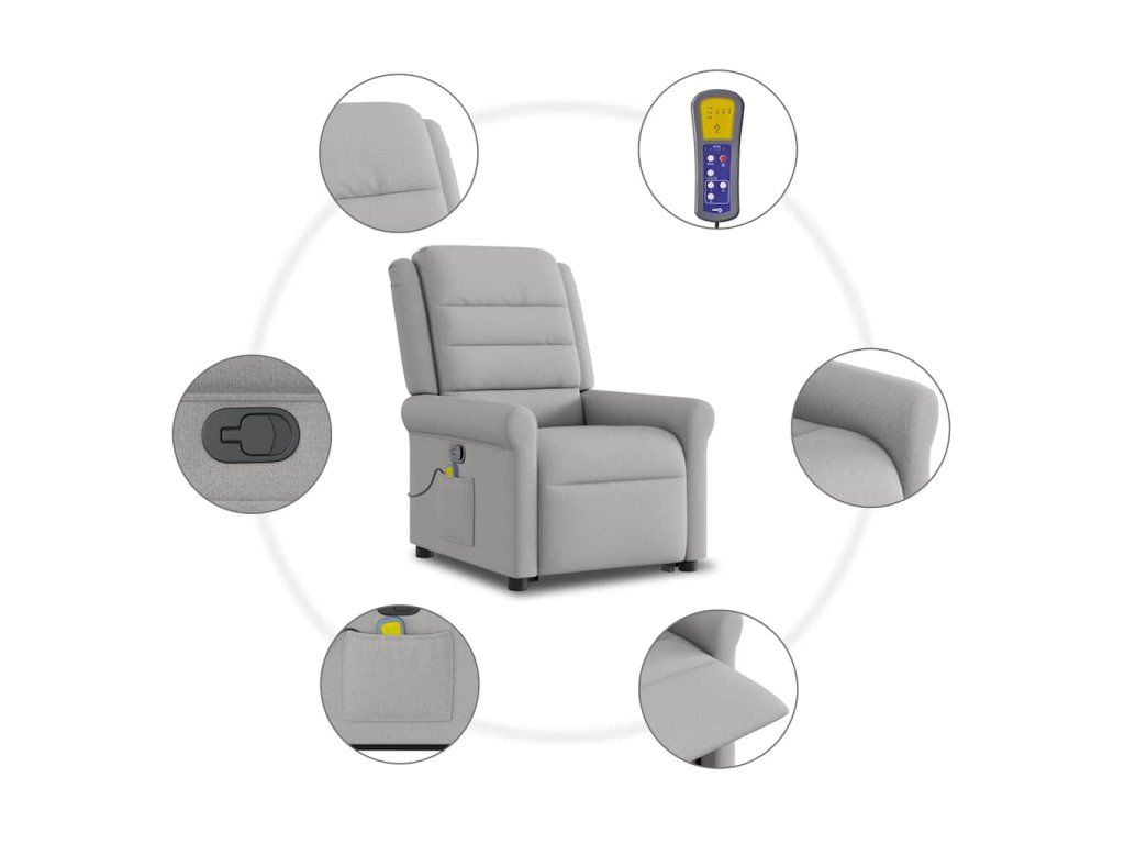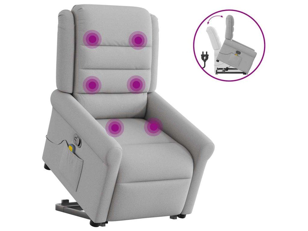 Multidom Zdvíhacie a sklápacie masážne kreslo oblakšedá látka