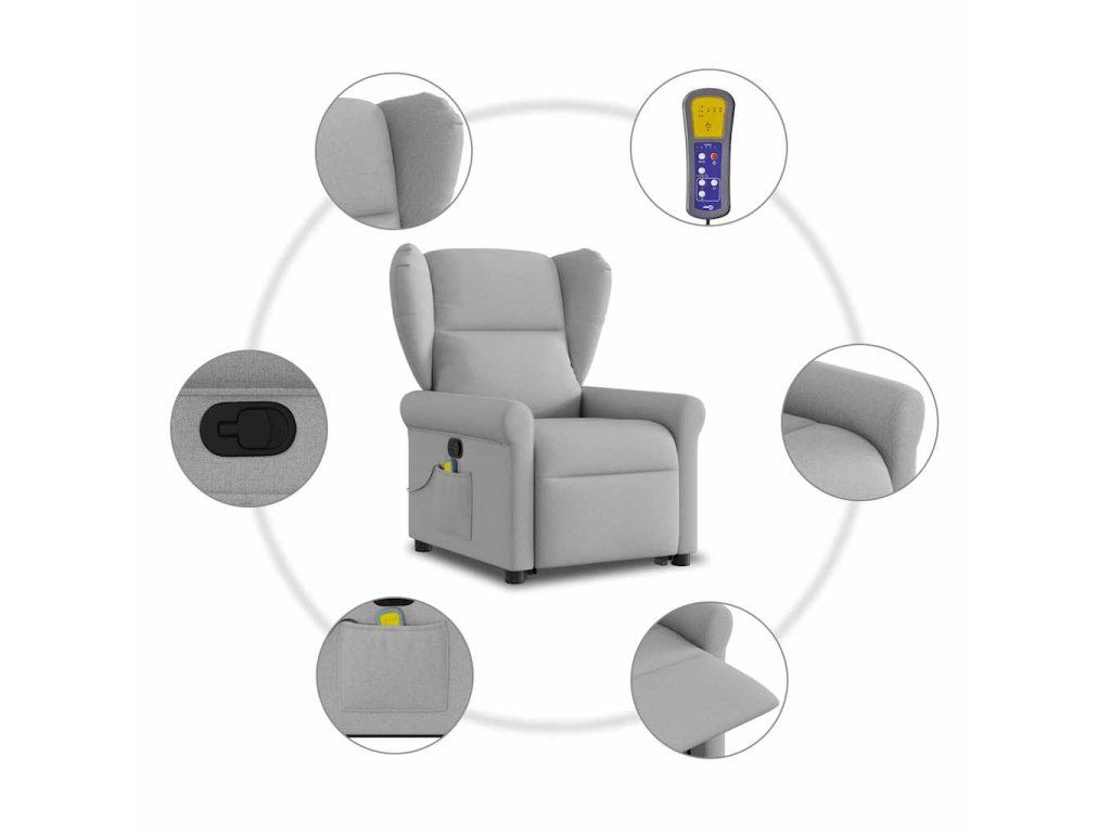 Multidom Zdvíhacie a sklápacie masážne kreslo oblakšedá látka