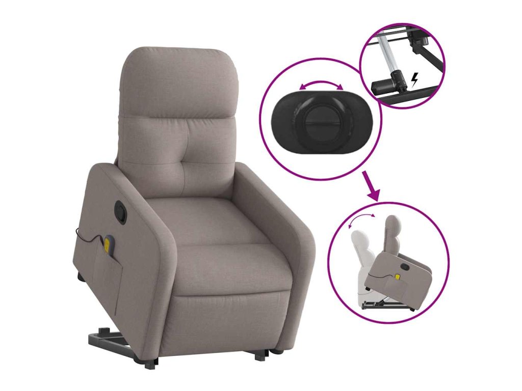 Multidom Zdvíhacie a sklápacie masážne kreslo sivohnedé látka