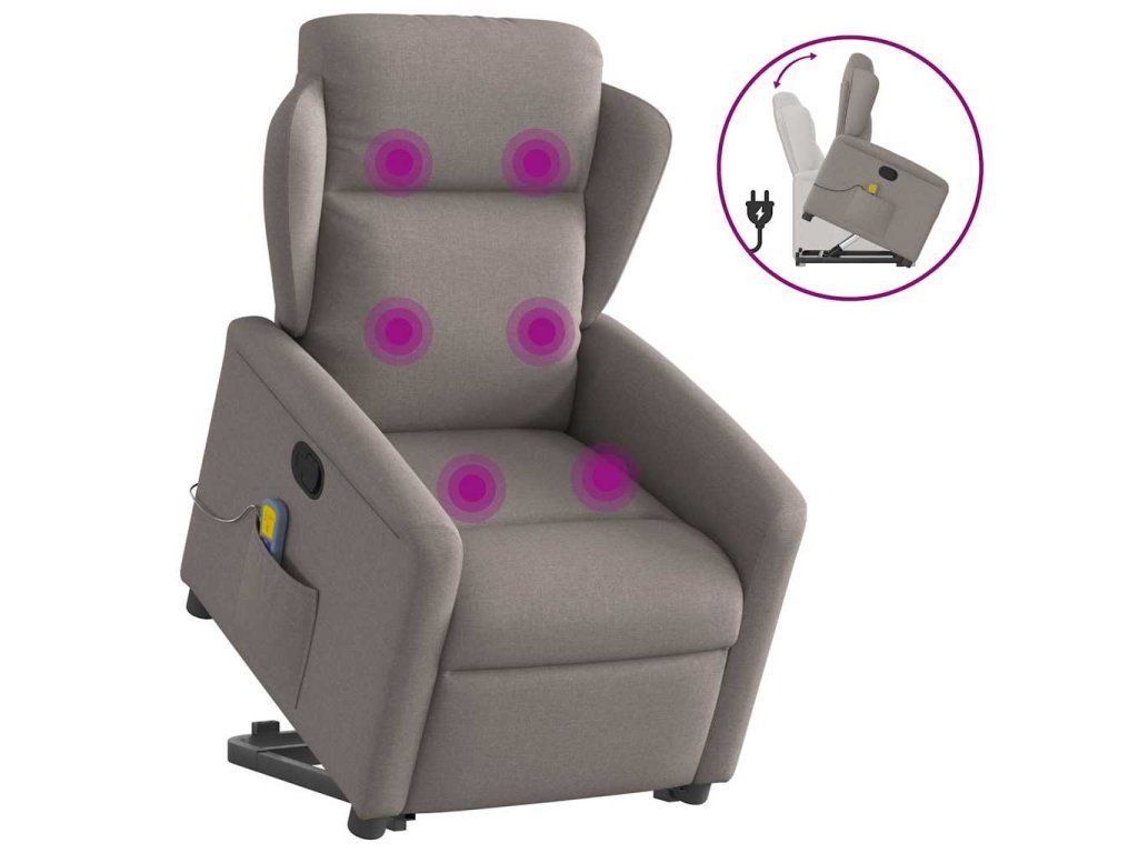 Multidom Zdvíhacie a sklápacie masážne kreslo sivohnedé látka