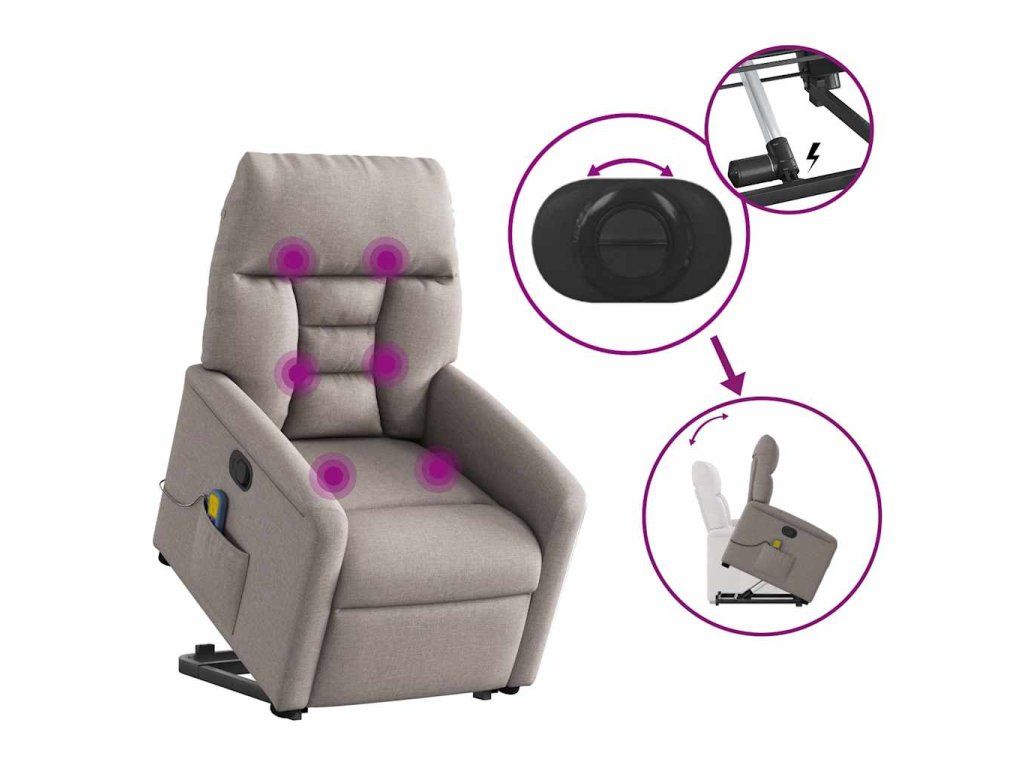 Multidom Zdvíhacie a sklápacie masážne kreslo sivohnedé látka